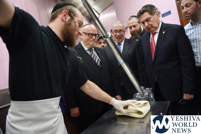 New York City Comptroller Scott M. Stringer visited the Chareidim Shmurah Matzah Bakery in Borough Park on Monday, April 8.