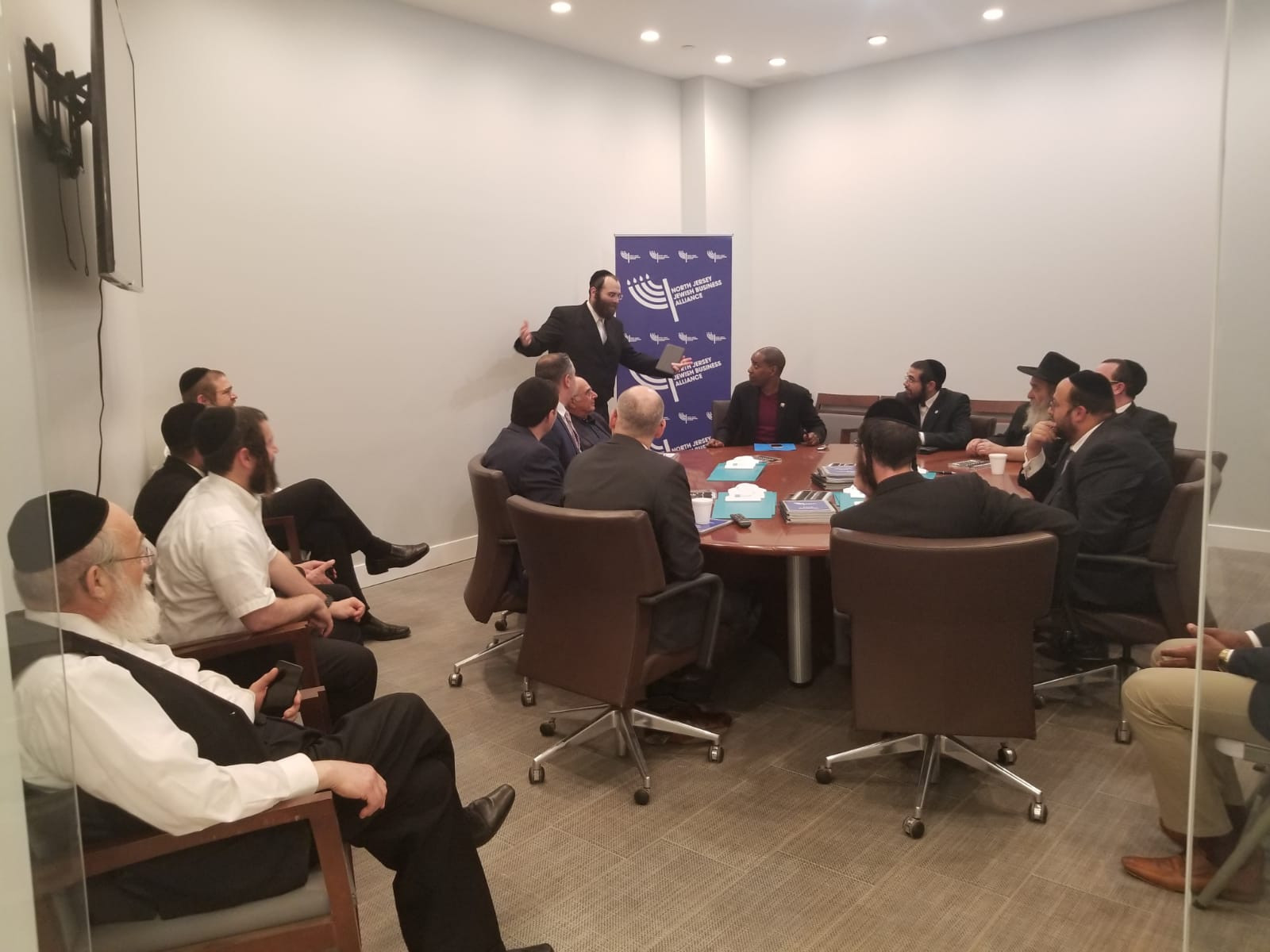 The meeting was arranged by the North Jersey Jewish Business Alliance (NJJBA.com) and hosted by Hillside Square. Hillside Square is a newly renovated business center with offices and warehouse space, conveniently located in Hillside, NJ. It has a minyan Mincha daily and kosher food available all day at the cafeteria.