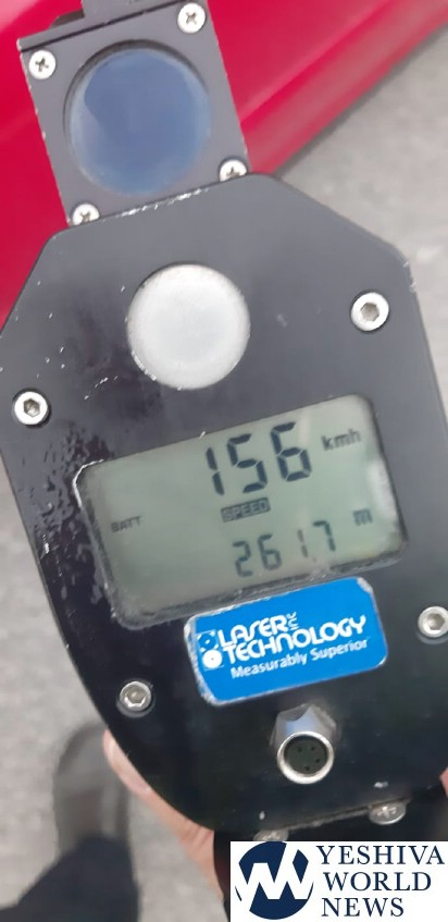 Jerusalem district police on Thursday apprehended a motorist traveling 156 KPH (97 MPH) on a stretch of road with a maximum speed of 80 KPH (48 MPH).