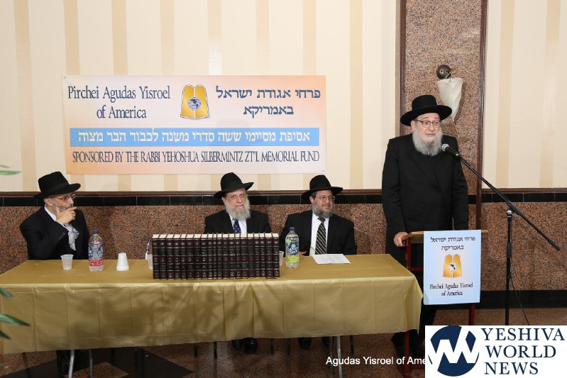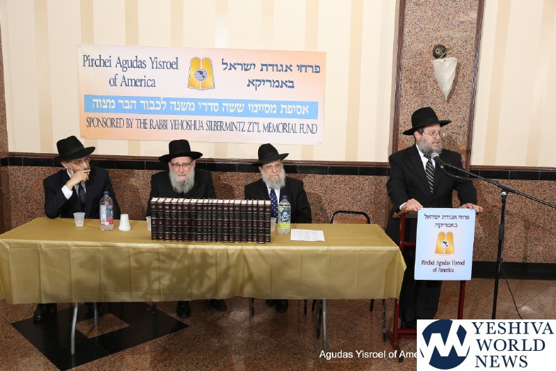 Speakers included Rabbi Herschel Zolty, Rosh Yeshiva, Yeshivas Mir, Brooklyn and Rav, Beis Medrash of Flatbush; Rabbi Chaim Dovid Zweibel, Executive Vice President, Agudas Yisroel of America; and Rabbi Ephraim Levi, National Director, Pirchei Agudas Yisroel of America. The program ended with fathers and grandfathers dancing lively with the mesayemim.