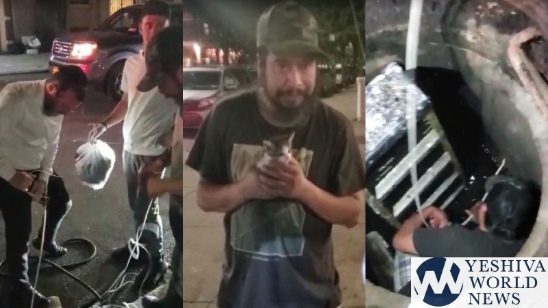 Watch as this group of New Yorkers – Chassidim, Hispanics and others – join together to rescue a kitten that was stuck in a sewer for nearly two days.