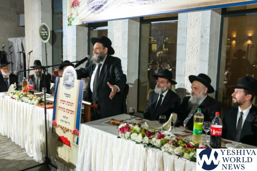 In his eloquent remarks, Rav Chizkiyahu Mishkovsky related that he attributes the tremendous success and siyata d’Shmaya that the yeshiva has, to the emunas chachamim with which it was founded. “I was in the room with the Rosh Yeshiva, Rav Shteinman when he asked Rav Dovid Hofstedter to establish a yeshiva for this kind of bachur. As everyone knows, the dream of Rav Dovid is Dirshu. Everyone should know and be tested on Shas, on Shulchan Aruch. The Rosh Yeshiva, however asked him to open this kind of yeshiva and, with his emunas chachamim, he accepted the task upon himself, b’ahavah. Today his dream is still being fulfilled, because some of those very talmidim of Yeshivas Acheinu are now at the level where they are taking Dirshu tests!”