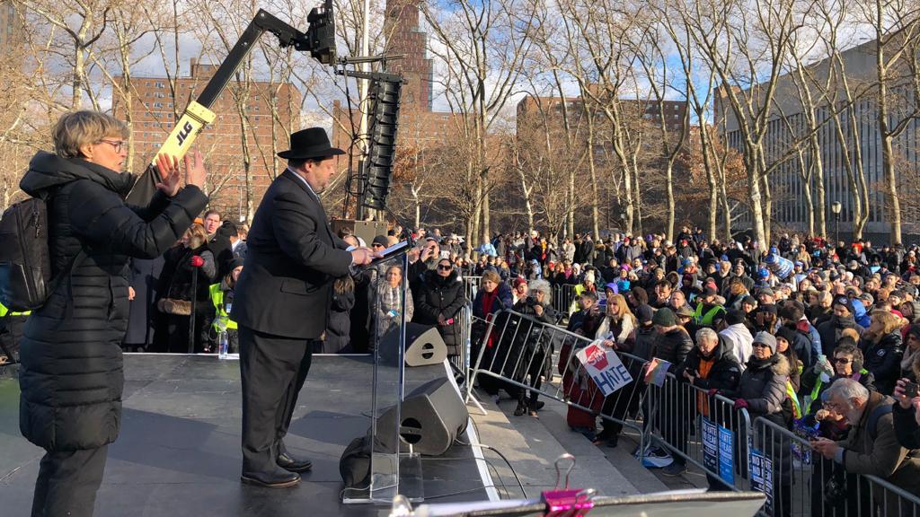 The “No Hate, No Fear” march was organized by New York’s Jewish community in the wake of recent anti-Semitic attacks, including a knife attack at a Hanukkah celebration north of New York City that left five people wounded and a fatal shootout at a kosher grocery in Jersey City, New Jersey.
