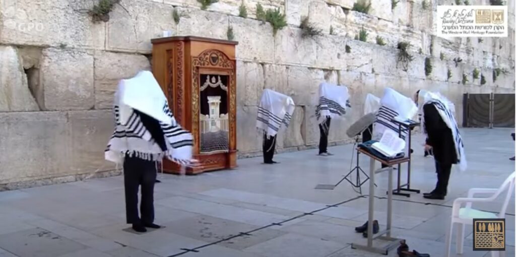 The Kosel is the only exception to Israel’s ban on minyan. A minyan of men, while adhering to social distancing regulations, is allowed to daven by the Kosel three times a day.