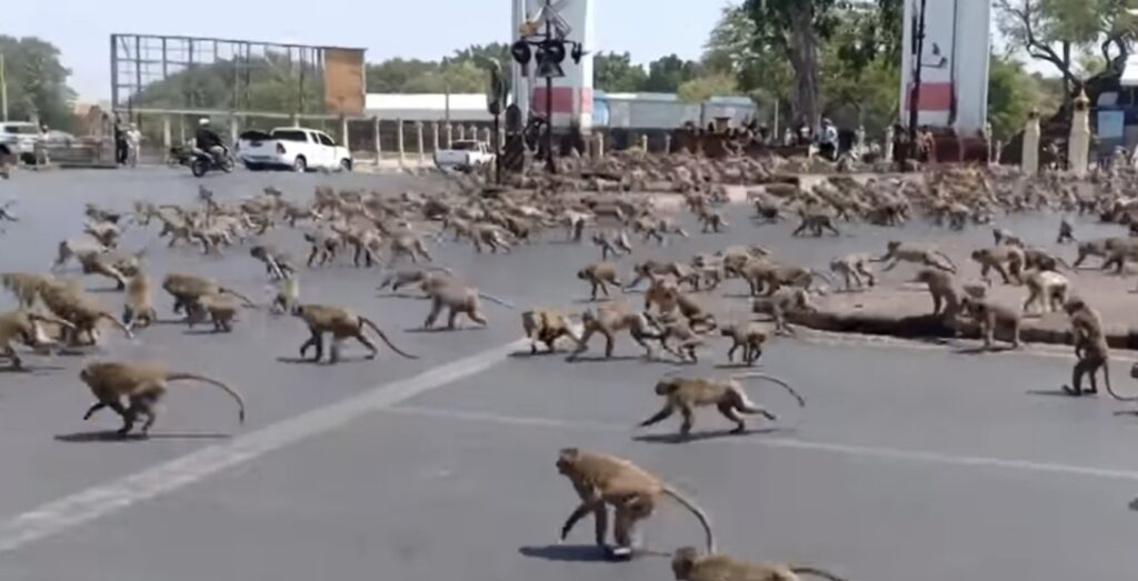 Wild monkeys in Thailand that are usually fed by the country’s customarily large amount of tourists are now starving and wandering the streets searching for food.