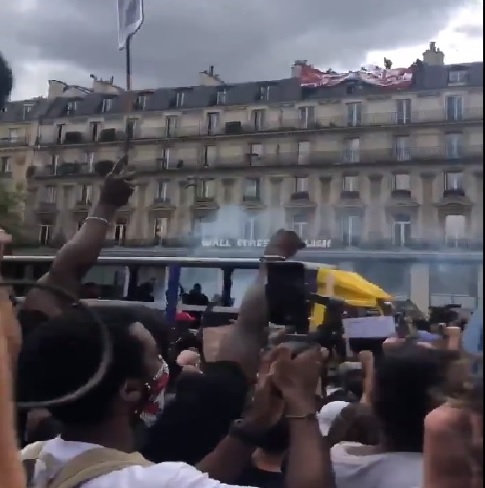The protesters, joining in the worldwide protests against racism and police brutality initiated by US protests over the killing of George Floyd, gathered to protest the death of Adama Traoré in 2016.