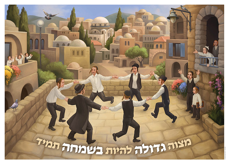 It is a song that we hear pretty regularly: “Mitzvah Gedolah lihios b’simcha – lihios b’simcha tamid.” The statement is so well-known that it is often mistakenly identified as a Gemorah or early Maamar Chazal. Indeed, Rabbi Yehoshua Kurland from Sh’or Yoshiv says that it is the only song that ever became a Pasuk.