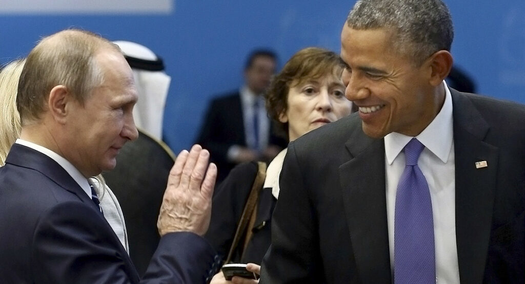 Russian President Vladimir Putin with former US President Barack Obama in 2015. (AP)