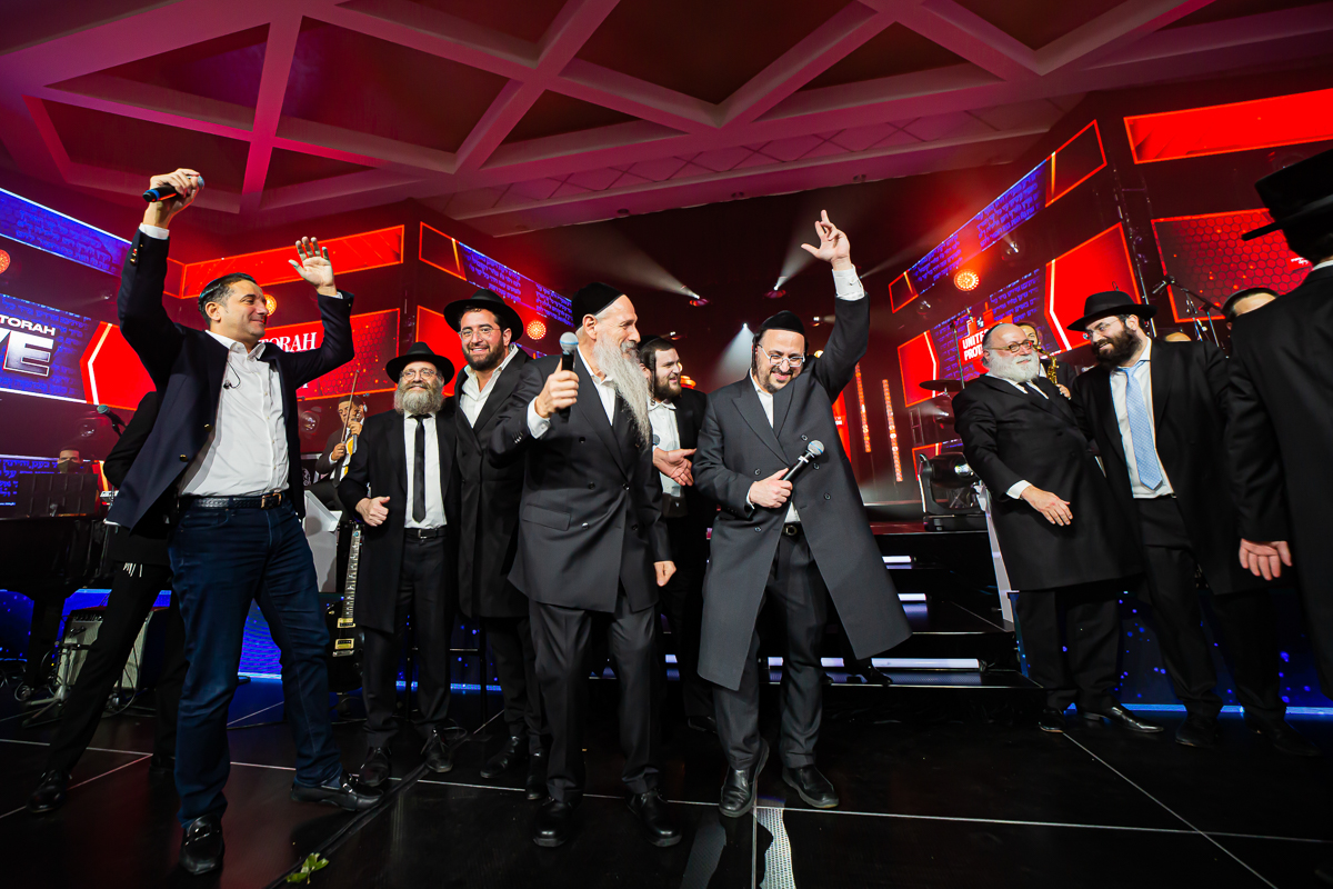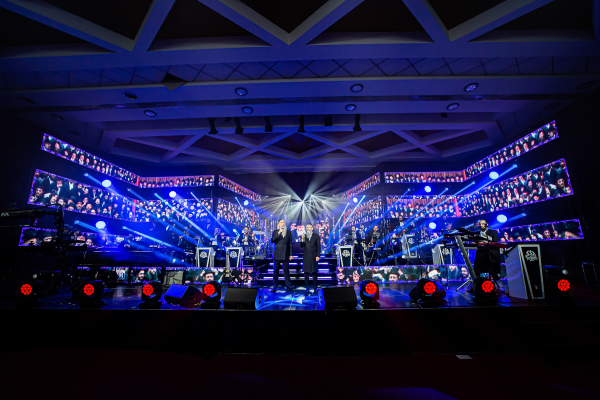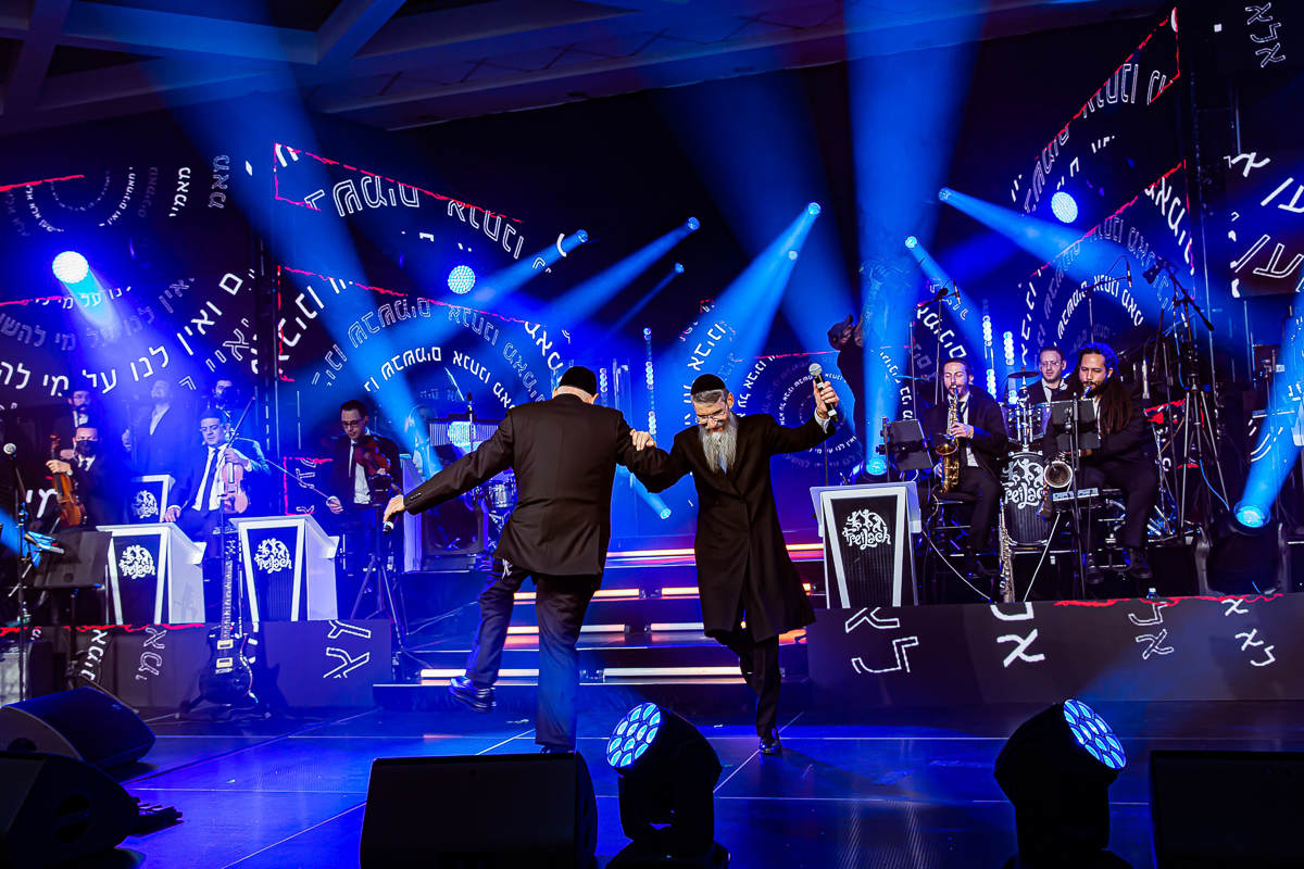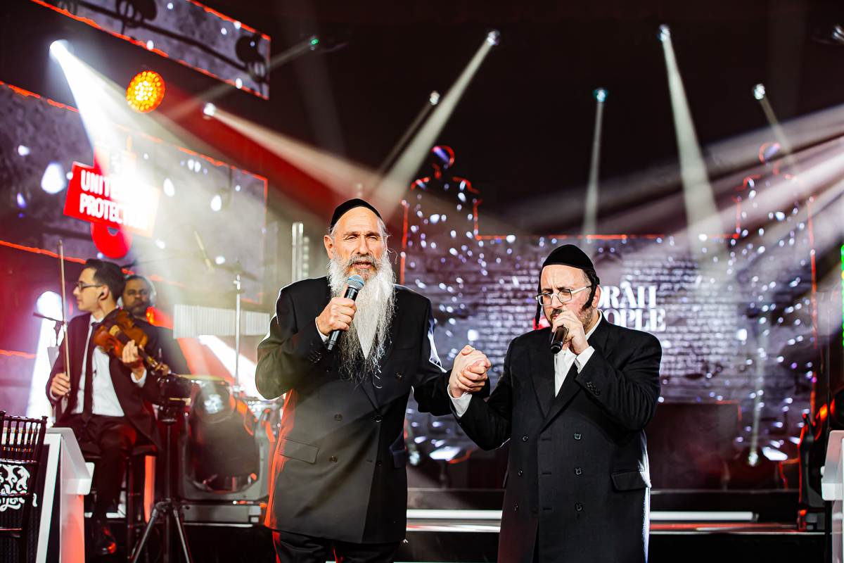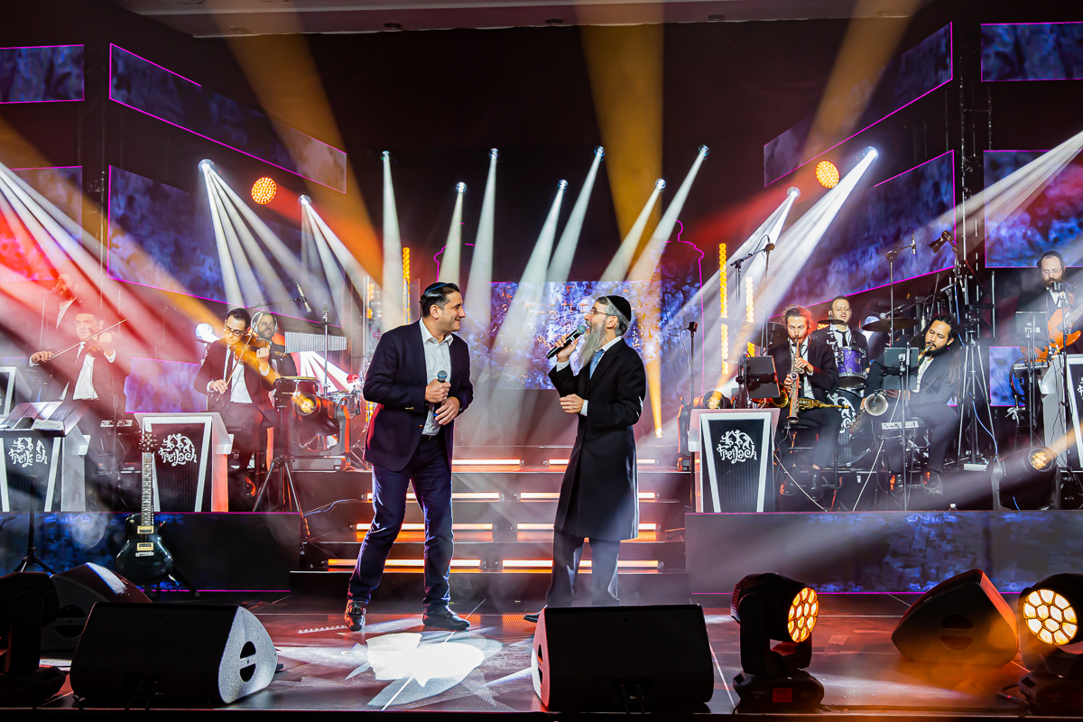 The masterfully planned program produced by Shneur Najar and program director Dovid Weinbaum wove narrative, inspiration, and entertainment into a compelling viewing experience. Videos, crafted by Rivkin Media, of first-hand testimony from those who credit their miraculous healing to a letter in the Miracle Sefer Torah gave way to messages from the dynamic brotherly duo of Rabbis Simon and YY Jacobson which seamlessly moved to performances from a veritable who’s who in Jewish music.