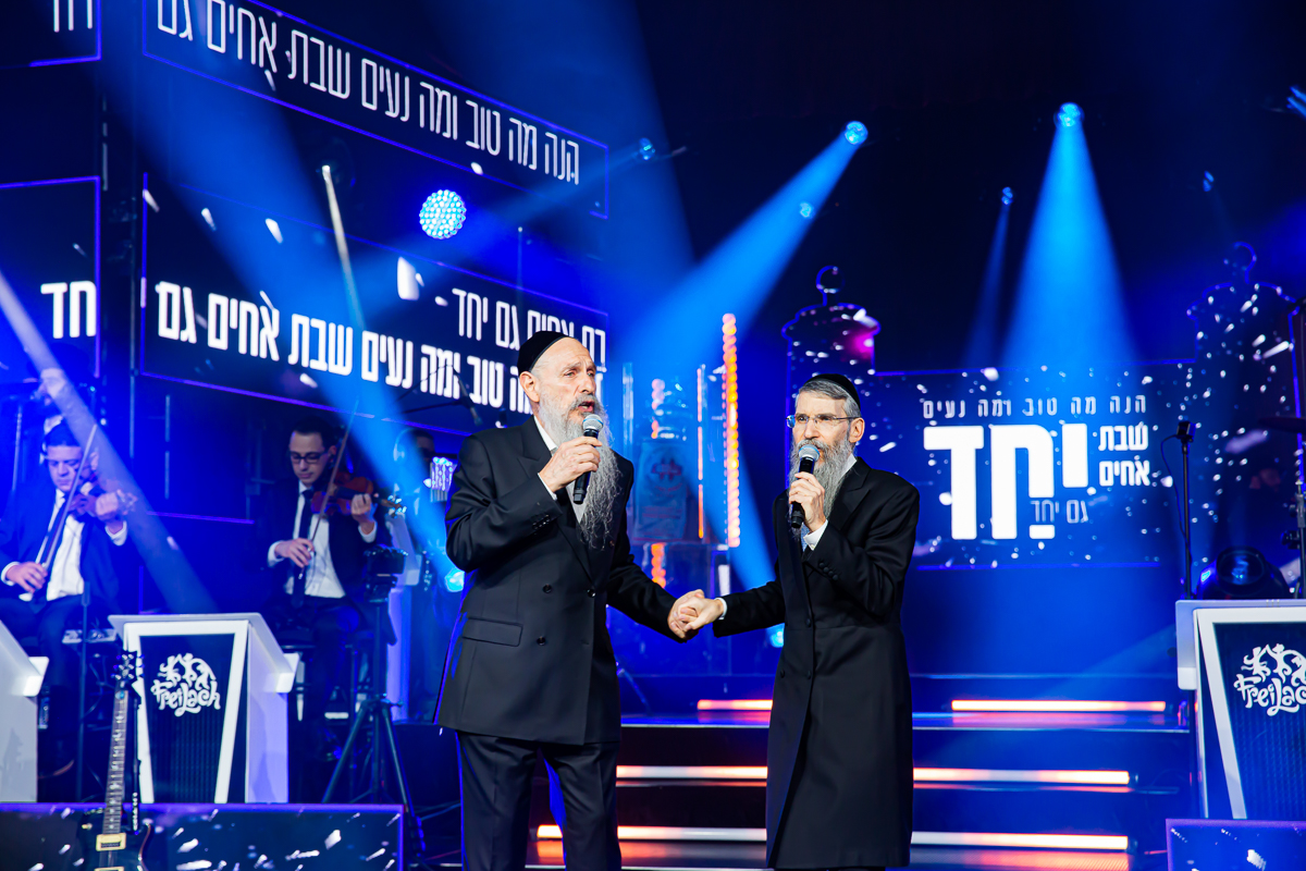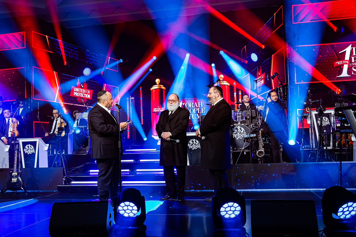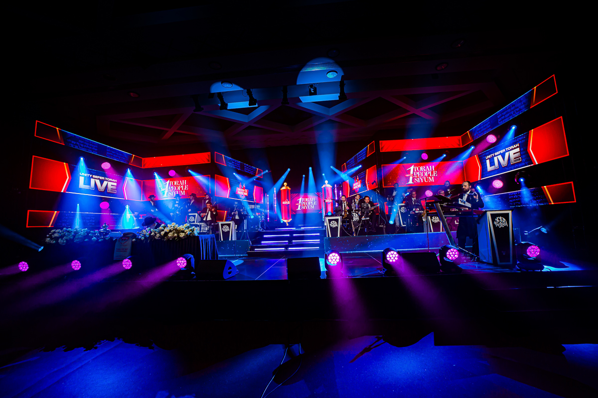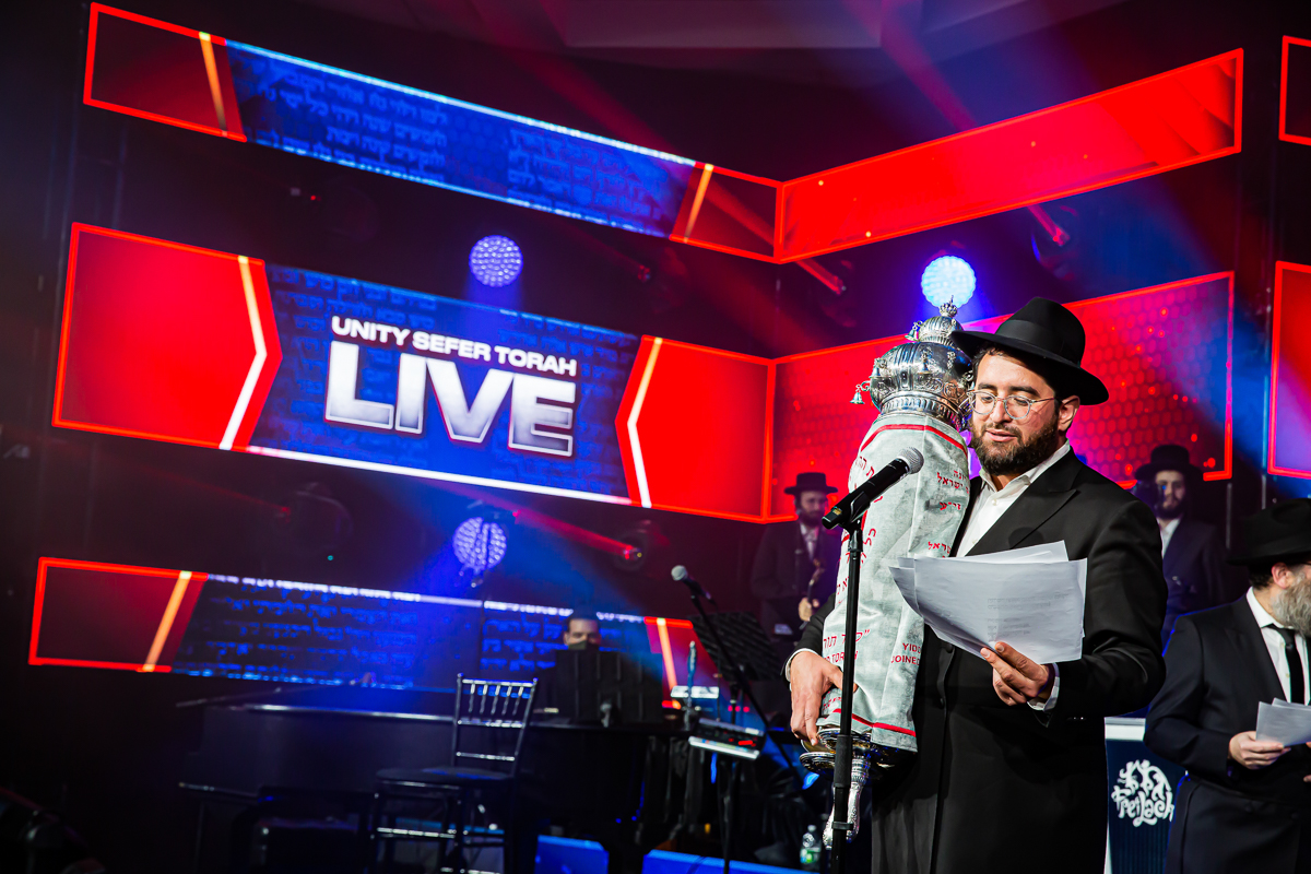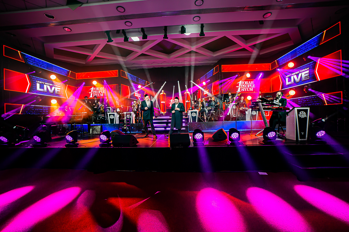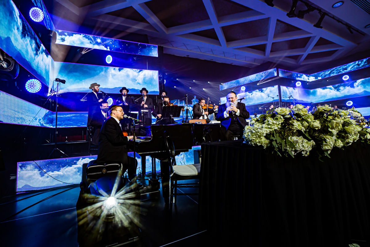 The masterfully planned program produced by Shneur Najar and program director Dovid Weinbaum wove narrative, inspiration, and entertainment into a compelling viewing experience. Videos, crafted by Rivkin Media, of first-hand testimony from those who credit their miraculous healing to a letter in the Miracle Sefer Torah gave way to messages from the dynamic brotherly duo of Rabbis Simon and YY Jacobson which seamlessly moved to performances from a veritable who’s who in Jewish music.