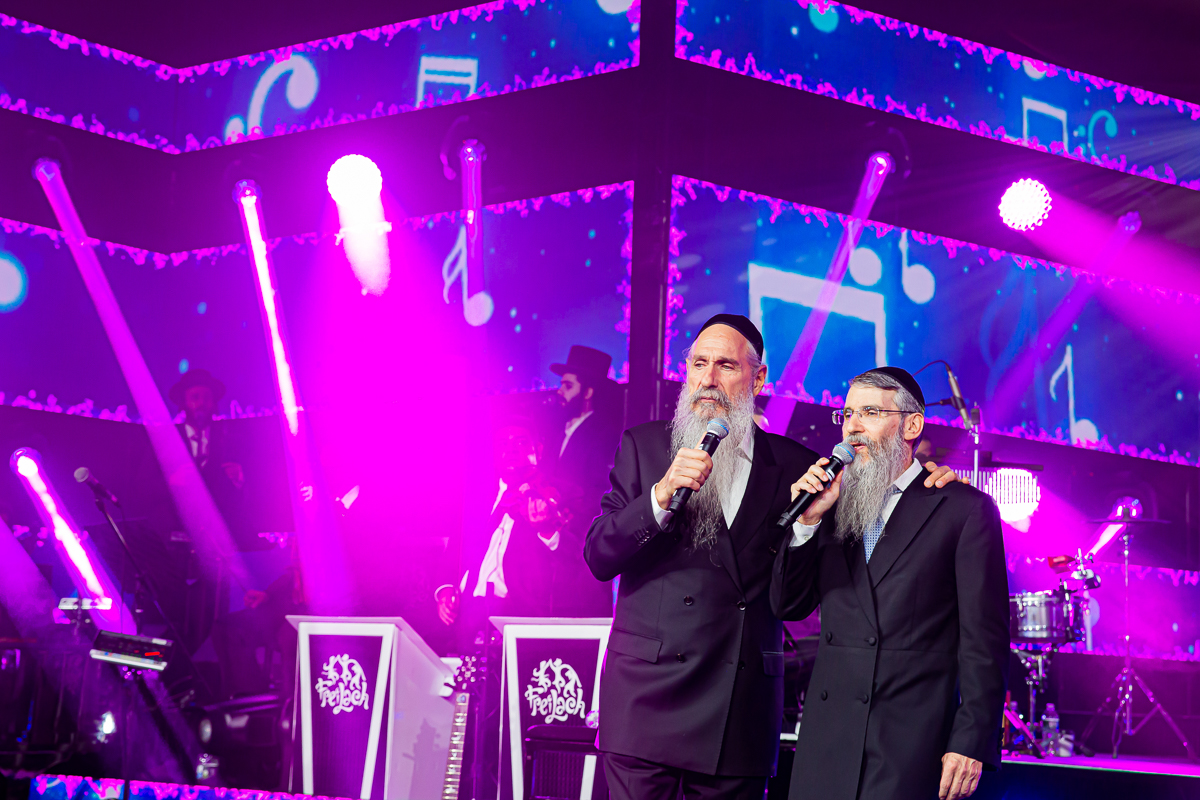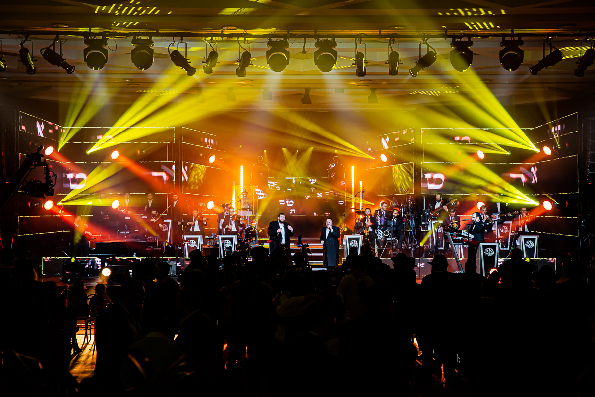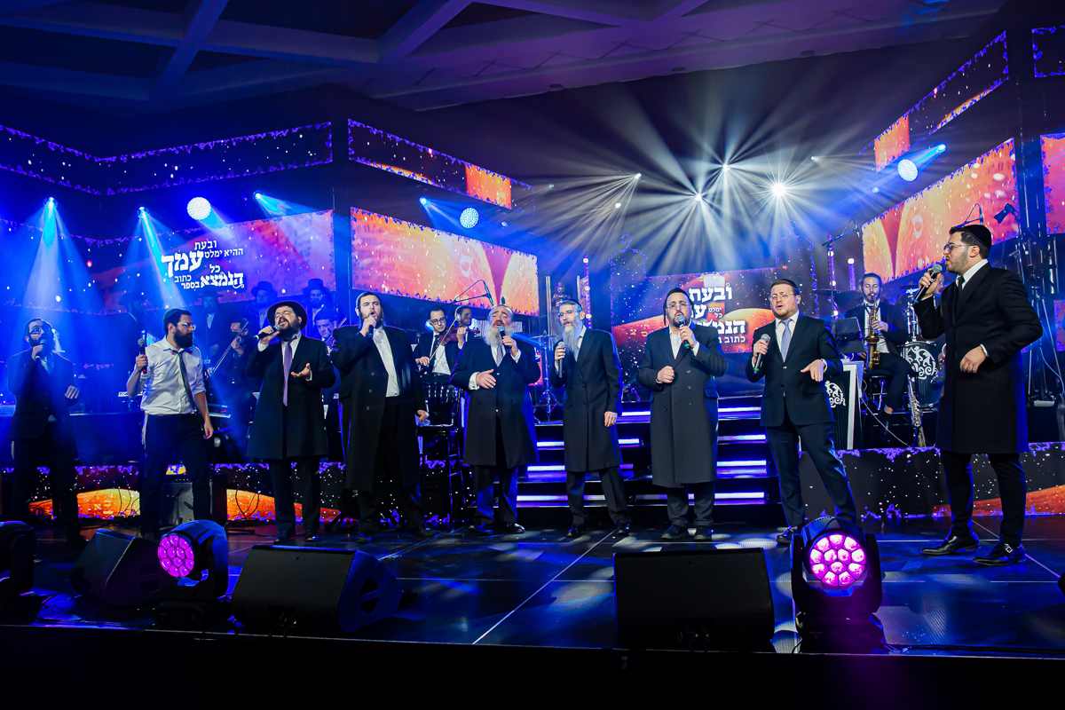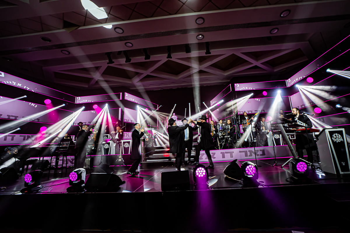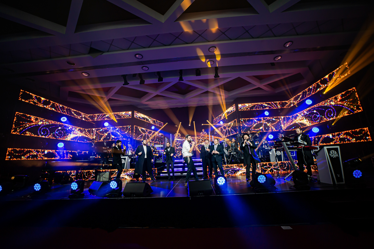 Avraham Fried, Mordechai Ben David, Chaim Yisrael, Eli Marcus, Baruch Levine, 8th Day band, Lipa Schmeltzer, Shmuli Ungar, Shlomo Simcha and Mendy J sang solo and in duet, soulful tunes and rousing Hakafos niggunim, as they danced across the stage late into the night.