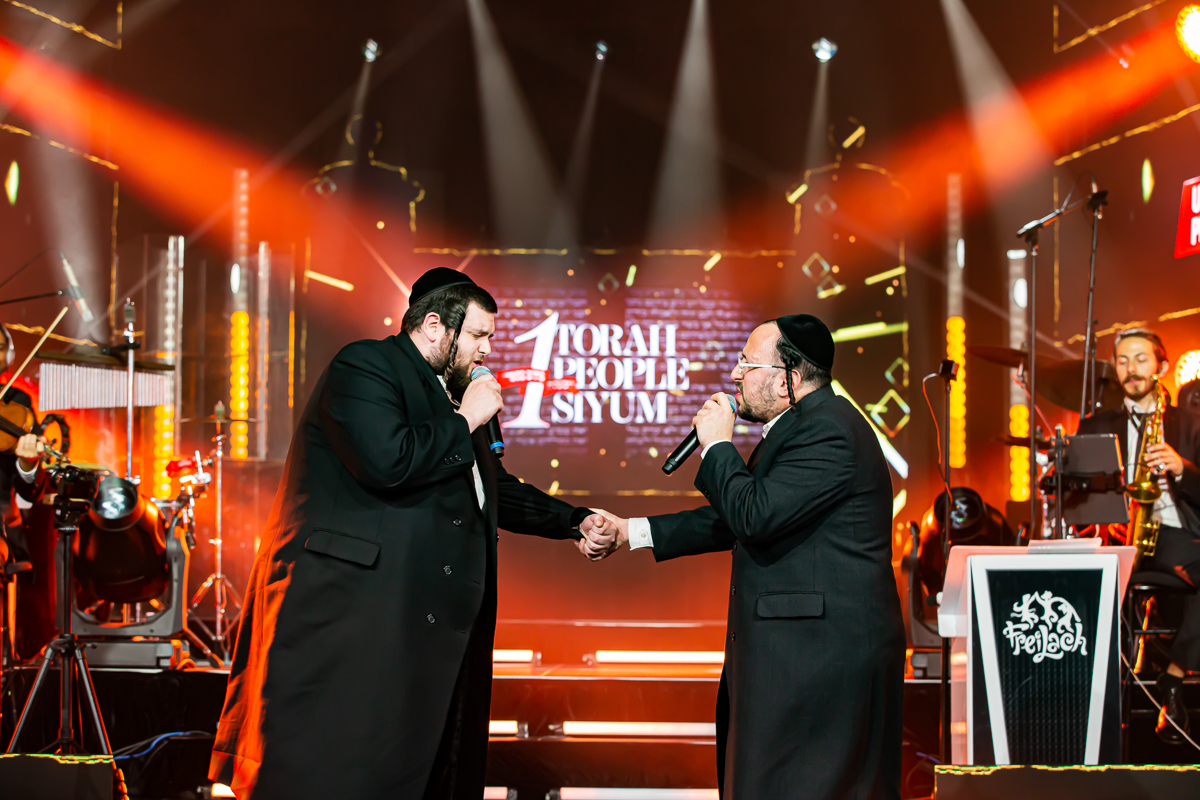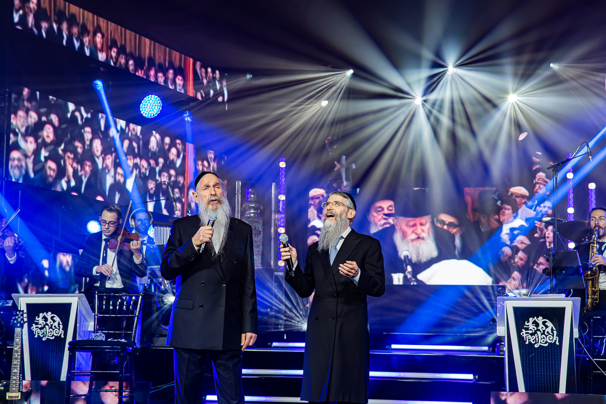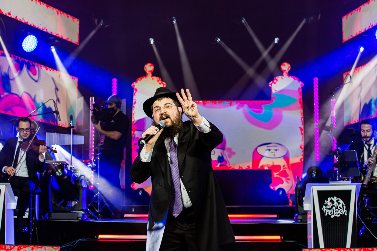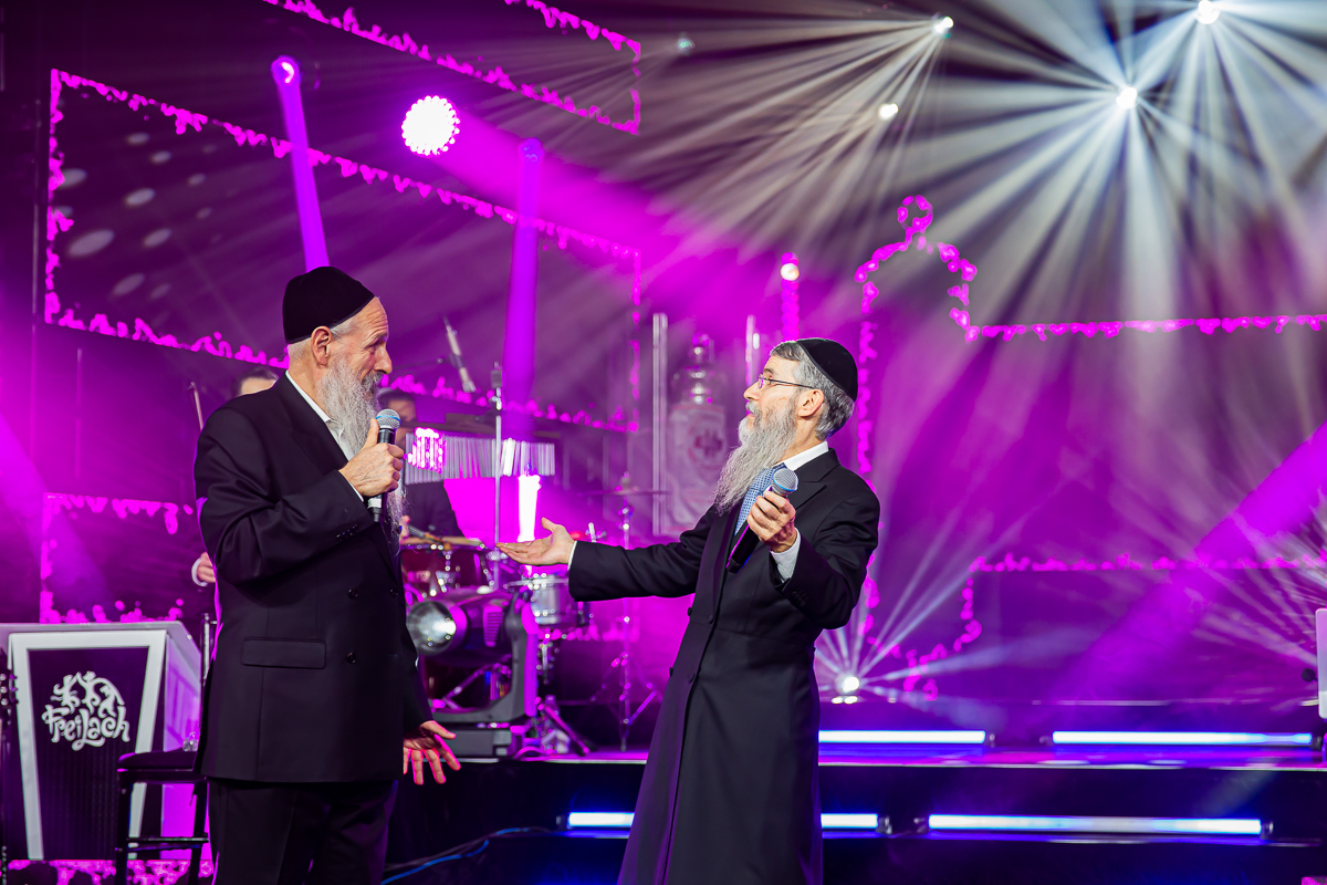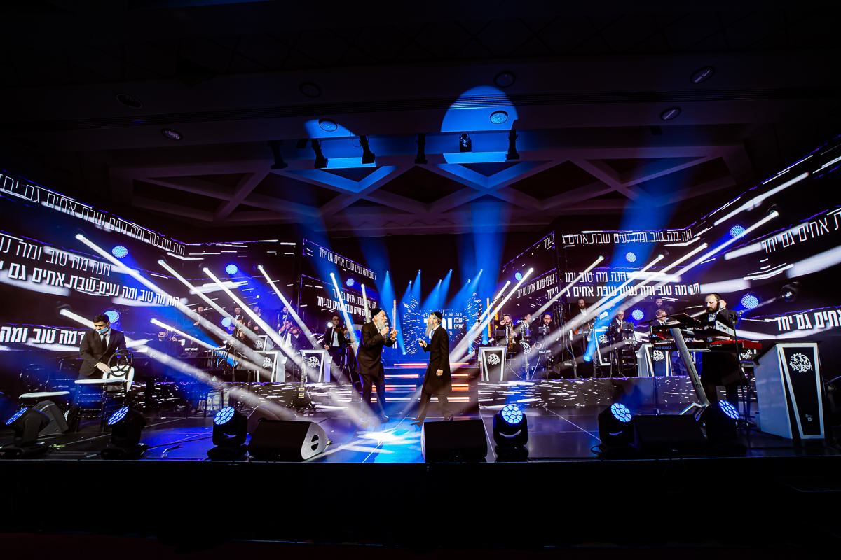 Avraham Fried, Mordechai Ben David, Chaim Yisrael, Eli Marcus, Baruch Levine, 8th Day band, Lipa Schmeltzer, Shmuli Ungar, Shlomo Simcha and Mendy J sang solo and in duet, soulful tunes and rousing Hakafos niggunim, as they danced across the stage late into the night.