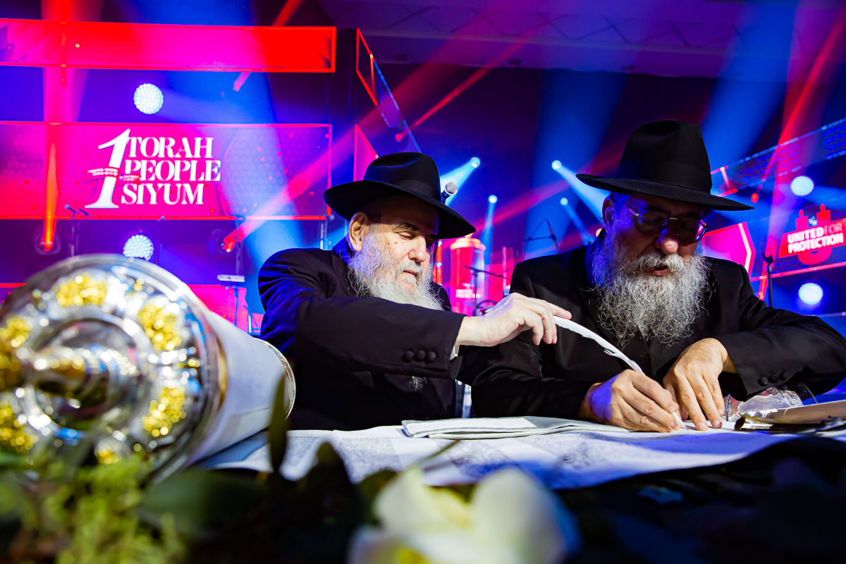 In the end, that urgency never faded. The Siyum was a rallying cry of achdus, not just preached but practiced. After the Torah had been completed, lifted, and dressed, Rabbi YY Jacobson spoke about achdus. “Ahavas Yisrael is the courage to learn the song in someone else’s heart. And to then sing it to them when they forget it.” He continued to decry “fragmentation, enough mistrust…enough of the tunnel vision that constricts us.”