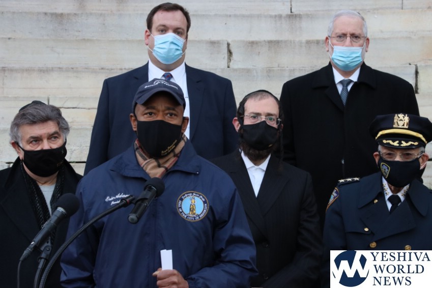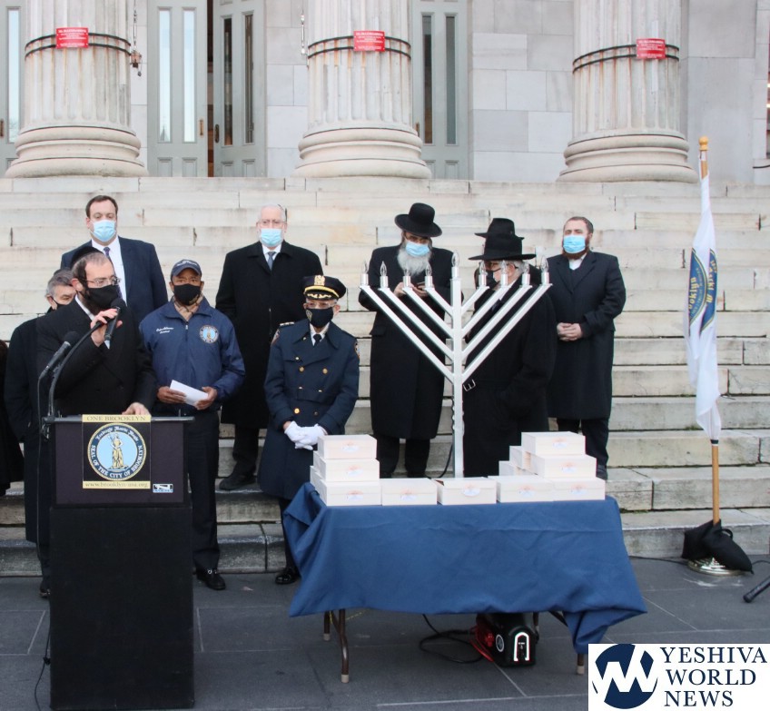 Eric Adams, together with prominent Jewish leaders and advocates lighting a menorah in celebration of Hanukah. The ceremony was held in memory of the victims tragically massacred in Jersey City exactly one year ago. Adams, who has always supported and looked out for Jewish interests reiterated his uncompromising stance against anti-Semitism and promised to continue working together with the Jewish community.