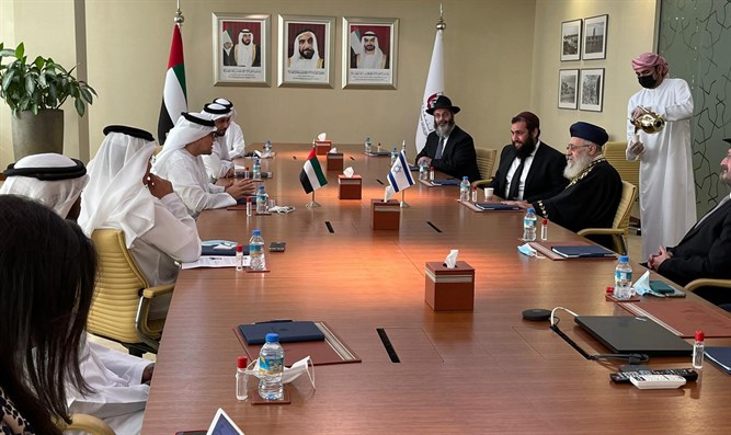 Later on Sunday, HaRav Yosef met with members of the Emirati royal family and senior government figures, including the Minister of Religious Affairs, the Minister of Tolerance and the Minister of Economic Development.