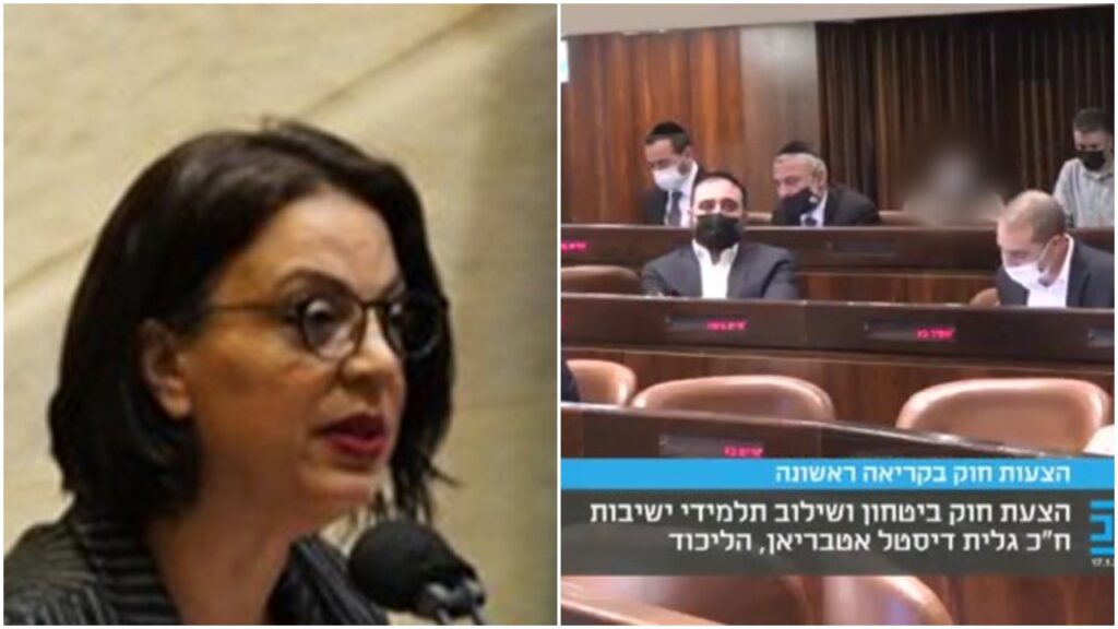 Kofrim are trying to kidnap children of Yisroel and be moser them into kefirah indoctrination military camps and into potentially fatal genetics experiments. This indecent woman among those kofrim and mosrim is somehow supposed to represent you by yelling in her best tempt to impersonate the rhetoric and style of goyish Parliamentarian men? Her emotions seem inauthentic. She literally works for the same people trying to kidnap your children and get them to renounce the Torah. Seriously. Just think about the situation. Don’t be fooled but the Magen David on a Chinese polyester flag in the background.
