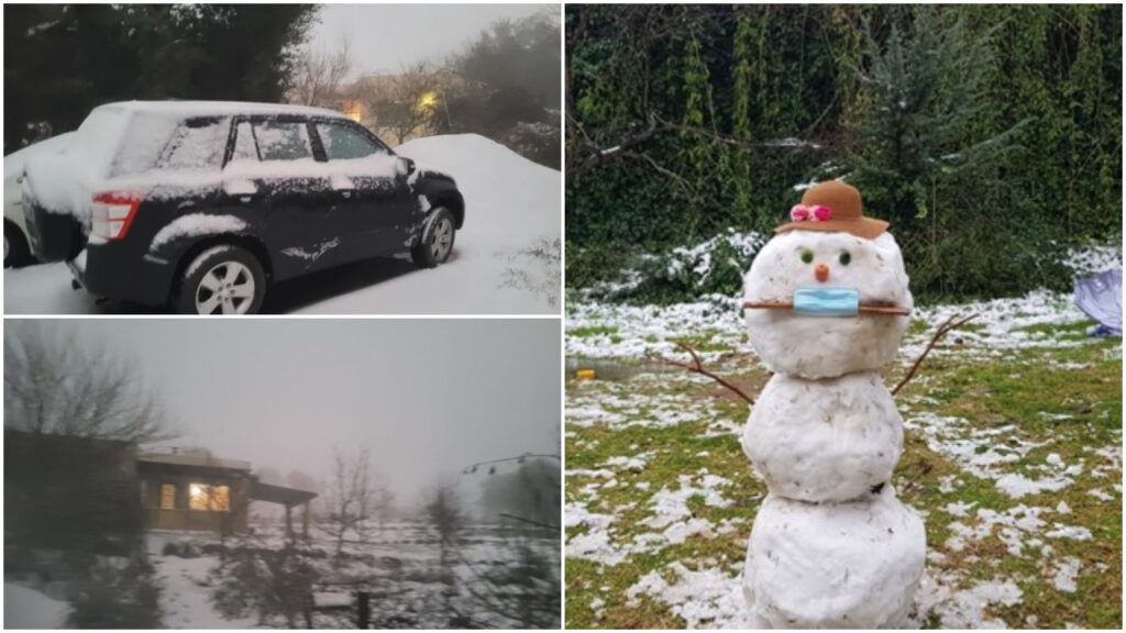 Israel’s first snow this winter began to fall in the northern Golan on Wednesday morning and snow accumulated on Har Chermon and in Ein Zivan in the Golan Heights, leading to the closing of many roads and school cancellations.