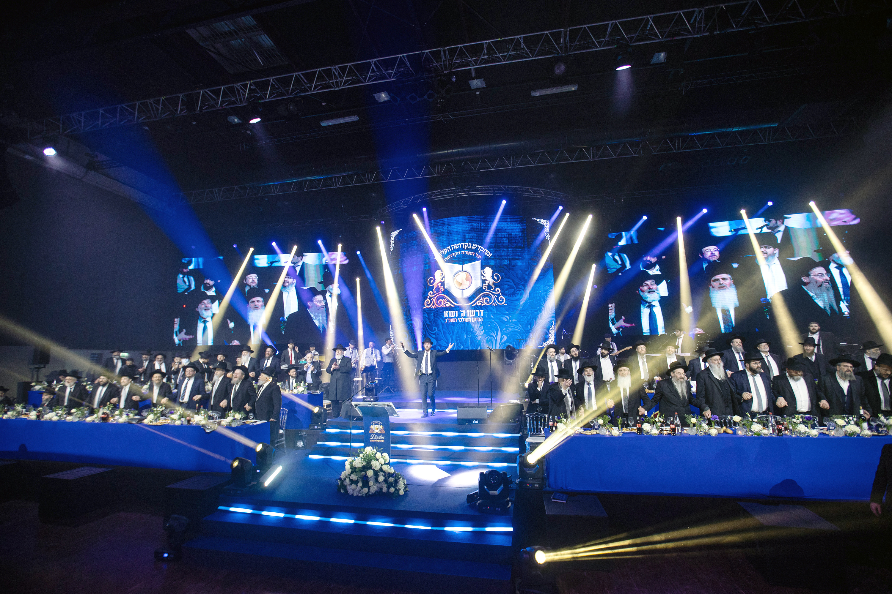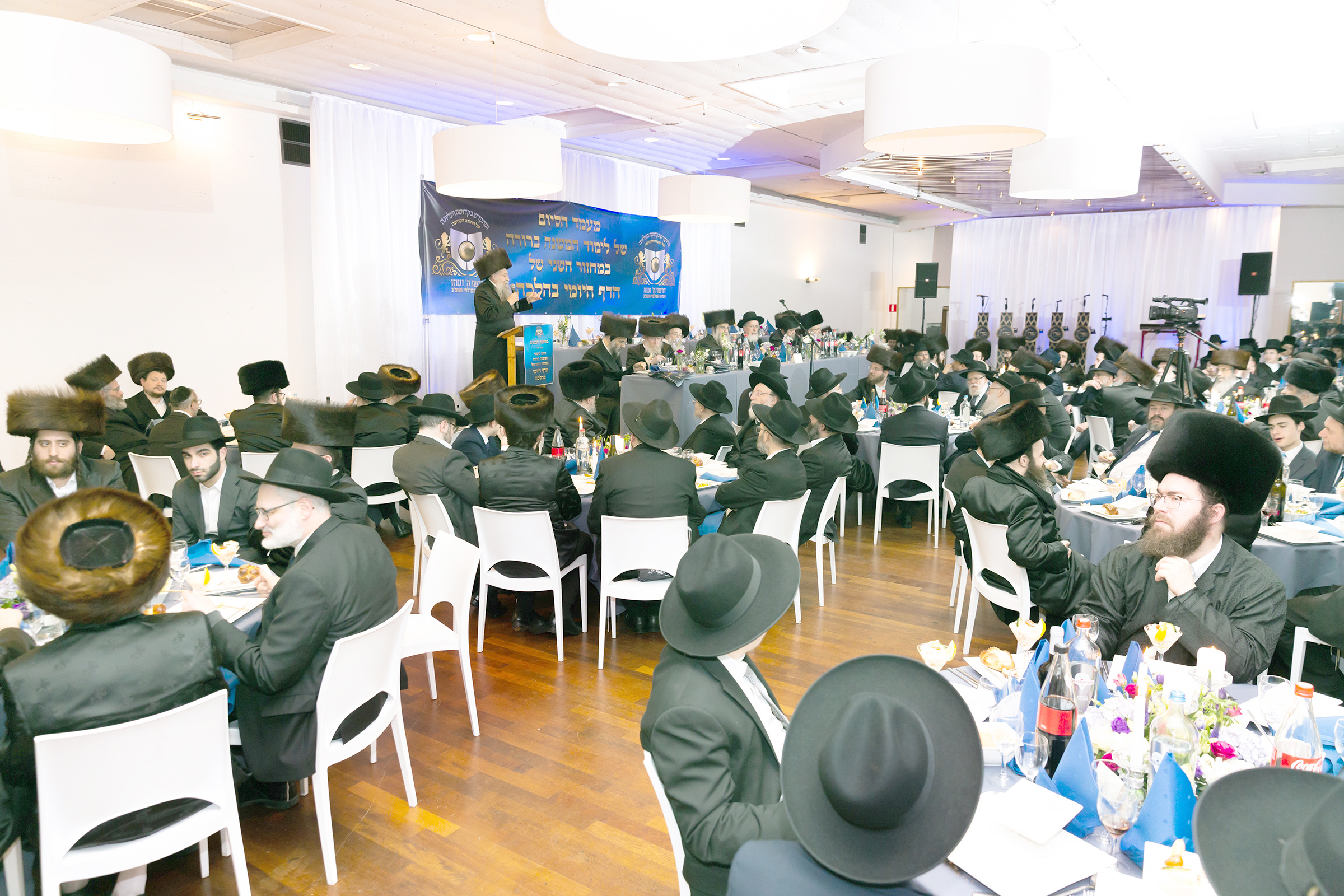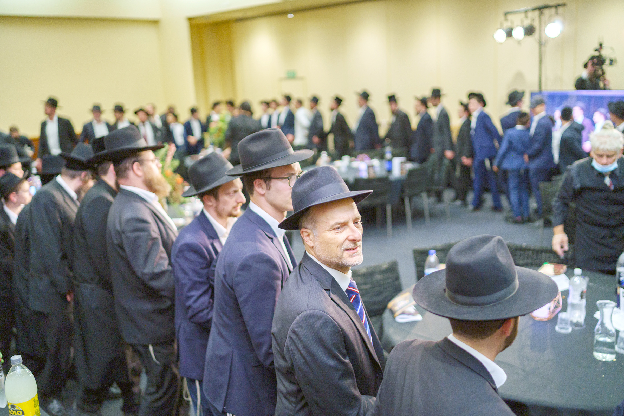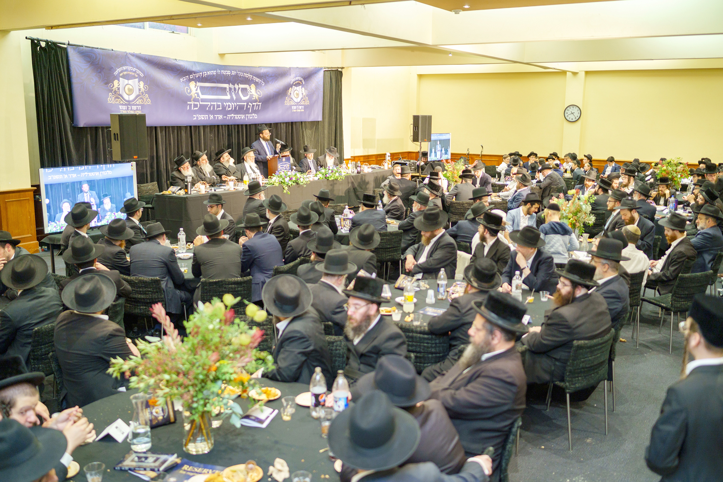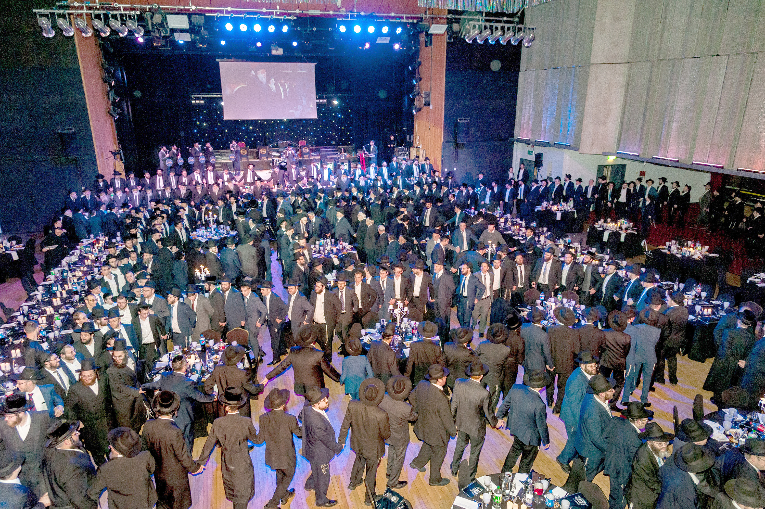 The climax of the siyumim in England was the massive event in London on Monday night, 20 Adar I/February 21 at the posh Meridian Grand. The siyum featured London Jewry in all its varied subcommunities joining together for a magnificent seudas mitzvah.