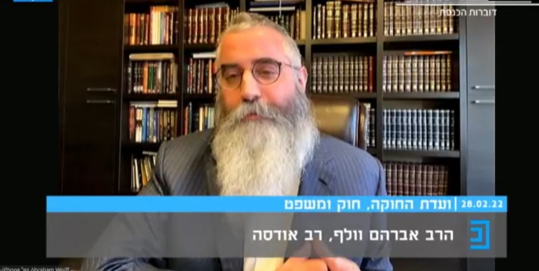 HaRav Avraham Wolf, Chabad shliach and Chief Rabbi of Odessa, spoke via Zoom during a meeting of the Knesset’s Constitution and Law Committee on Monday. Absorption Minister Pnina Tamno-Shata also participated in the meeting.