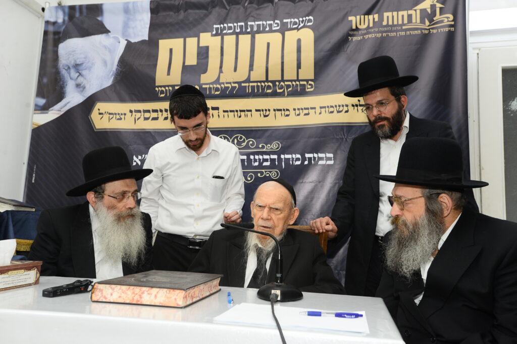 This week, after Shabbos HaGadol, the Ponovech Rosh Yeshiva Rabbi Edelstein Shlita, the great Gaon Rabbi Shraga Steinman Shlita, Rosh Yeshiva of Orchot Torah and Rabbi Avraham Yeshayahu Kanevsky Shlita, the eldest son of Maran Rav Chaim zatzal and President of Orchot Yosher, gathered at his father zatzal’s home to announce the opening of the program.