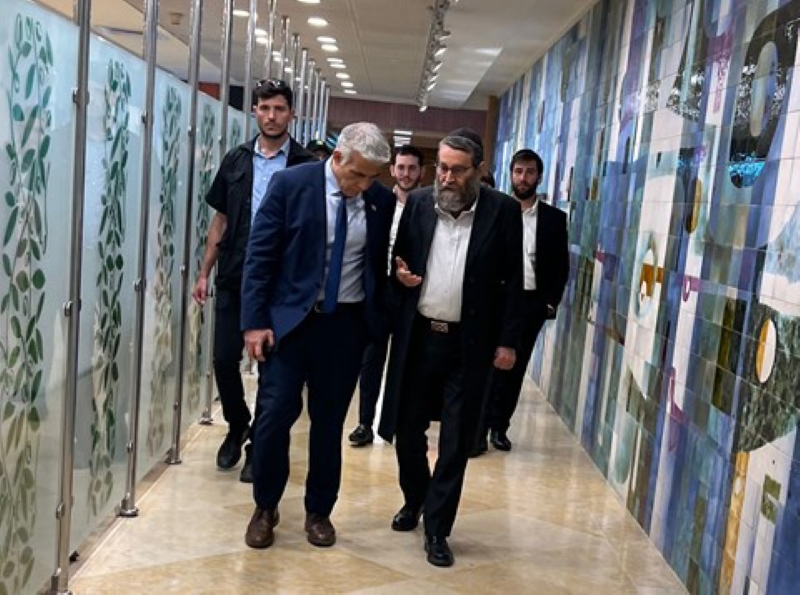 Lapid is aware that Gafni will not consider cooperating with the current government and certainly won’t join it. However, he’s interested in maintaining good relations with Gafni to prepare for a future scenario in which Netanyahu will be unable to form a coalition, in which case, Yesh Atid would be open to cooperating with the Chareidi parties to form an alternative coalition or at least gain their support from outside the coalition.