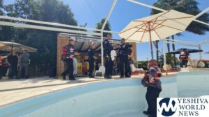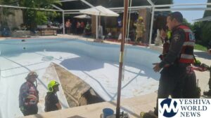 A pool party for employees of a private company was taking place with about 50 people present when at about 2:40 p.m. the water in the pool suddenly began receding and a sinkhole opened up, sweeping two people inside. One 34-year-old man managed to extricate himself, suffering light injuries in the process. MDA paramedics who arrived at the scene administered medical aid and evacuated him to the hospital. They also treated ten people for shock.