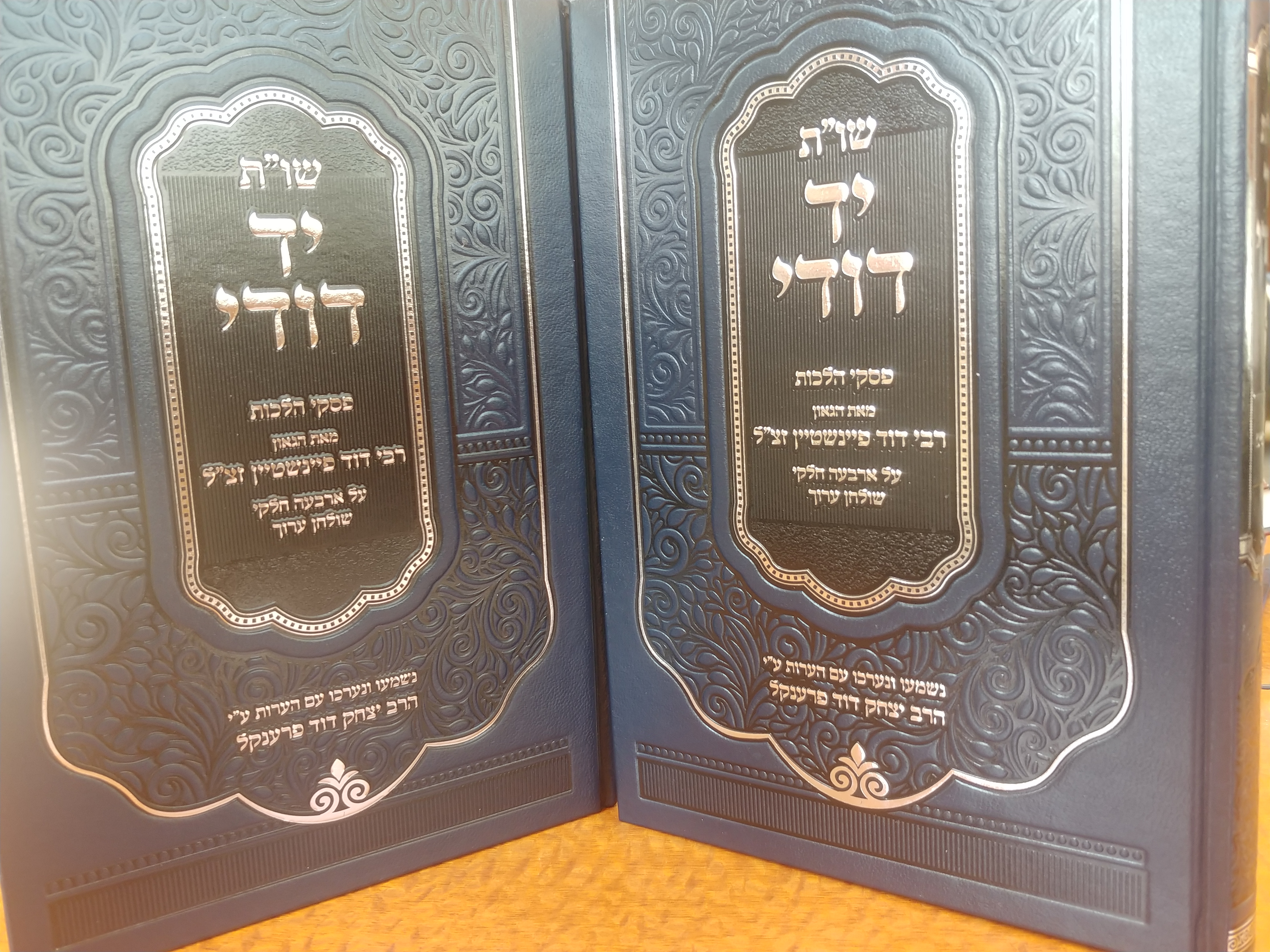 This week, Boruch Hashem, Rav Dovid’s rulings on four sections of Shluchan Aruch has been printed in a beautiful two volume work 679 page, entitled, “Shailos uTeshuvos Yad Dodi” with footnotes from Rabbi Frankel (Volume I has 282 pages Volume II has 252 pages and there are 96 pages of indexes).