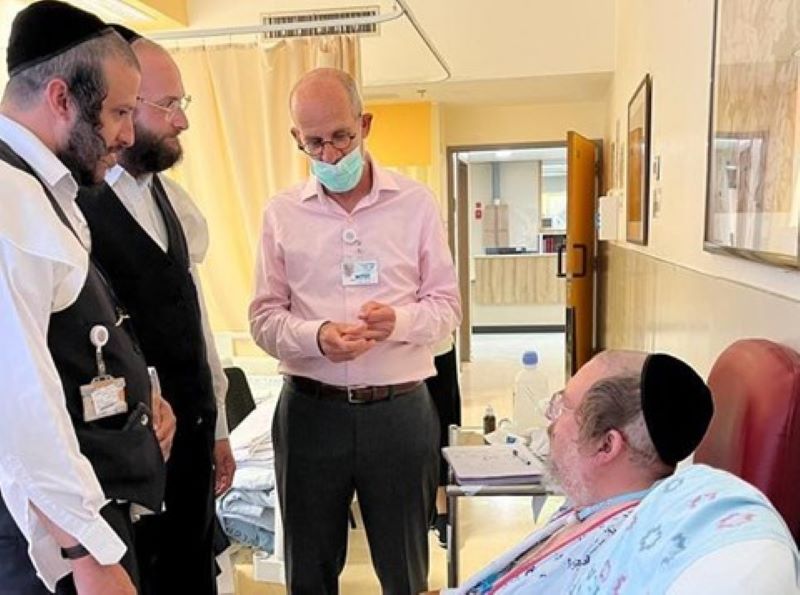 Several days ago, Glick was transferred from the ICU to a regular hospital unit. On Sunday morning, the head of Shaarei Tzedek, Prof. Ofer Merin, visited Reb Glick, along with Chesky Berkowitz, an askan and medical adviser and friend of the family from the US, and Motti Fried, the head of the Saad U’Marpe organization.