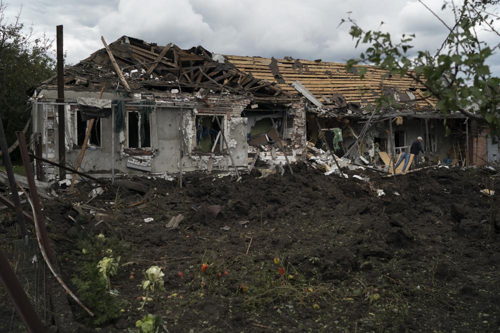 A man walks over the debris of a house that was heavily damaged after a Russian attack in Sloviansk, Ukraine, Tuesday, Sept. 6, 2022. (AP Photo/Leo Correa)