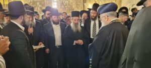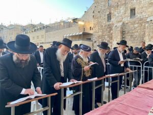 The Moetzet Chachmei HaTorah called to the public on Tuesday evening to gather at the Kosel on Wednesday, Erev Rosh Chodesh Kislev for an atzeret tefillah for HaRav Badani’s refuah. The tefillah took place at 3:30 pm. at the Kosel plaza with the participation of HaGaon HaRav Yitzchak Yosef, HaChacham Nissim Ben-Shimon, HaGaon HaRav Reuven Elbaz, HaGaon HaRav Dovid Yosef, and the Kosel Rav, HaGaon HaRav Shmuel Rabinowitz.