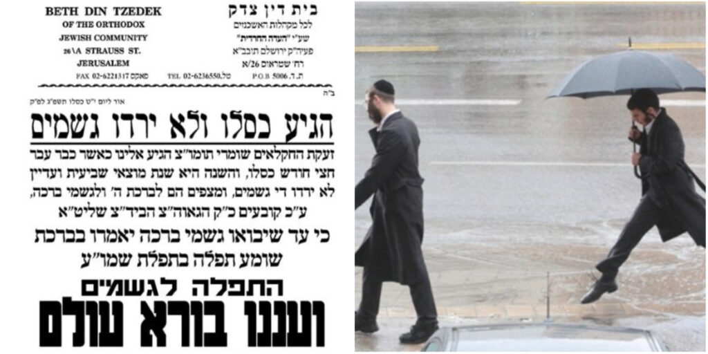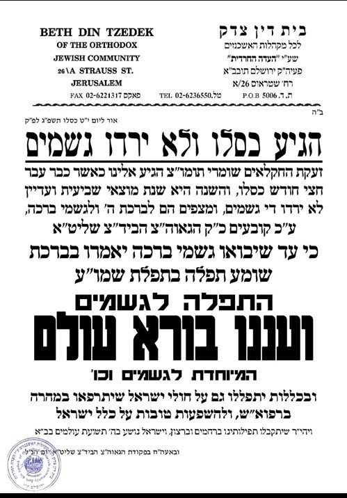 “Kislev has arrived and rain hasn’t fallen,” the Badatz notice says. “We’ve heard the call of the Shomrei Torah farmers. Half of Kislev has already passed and this year is Motzei Shiviis and rain still hasn’t fallen and they’re hoping for Birchas Hashem and gishmei Bracha.”