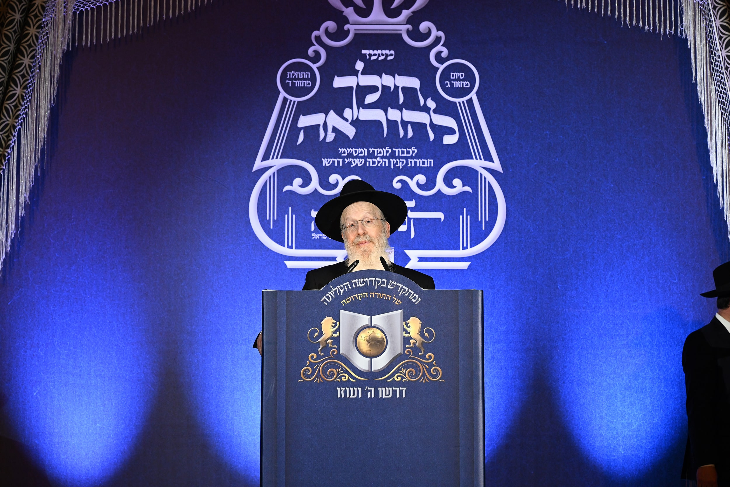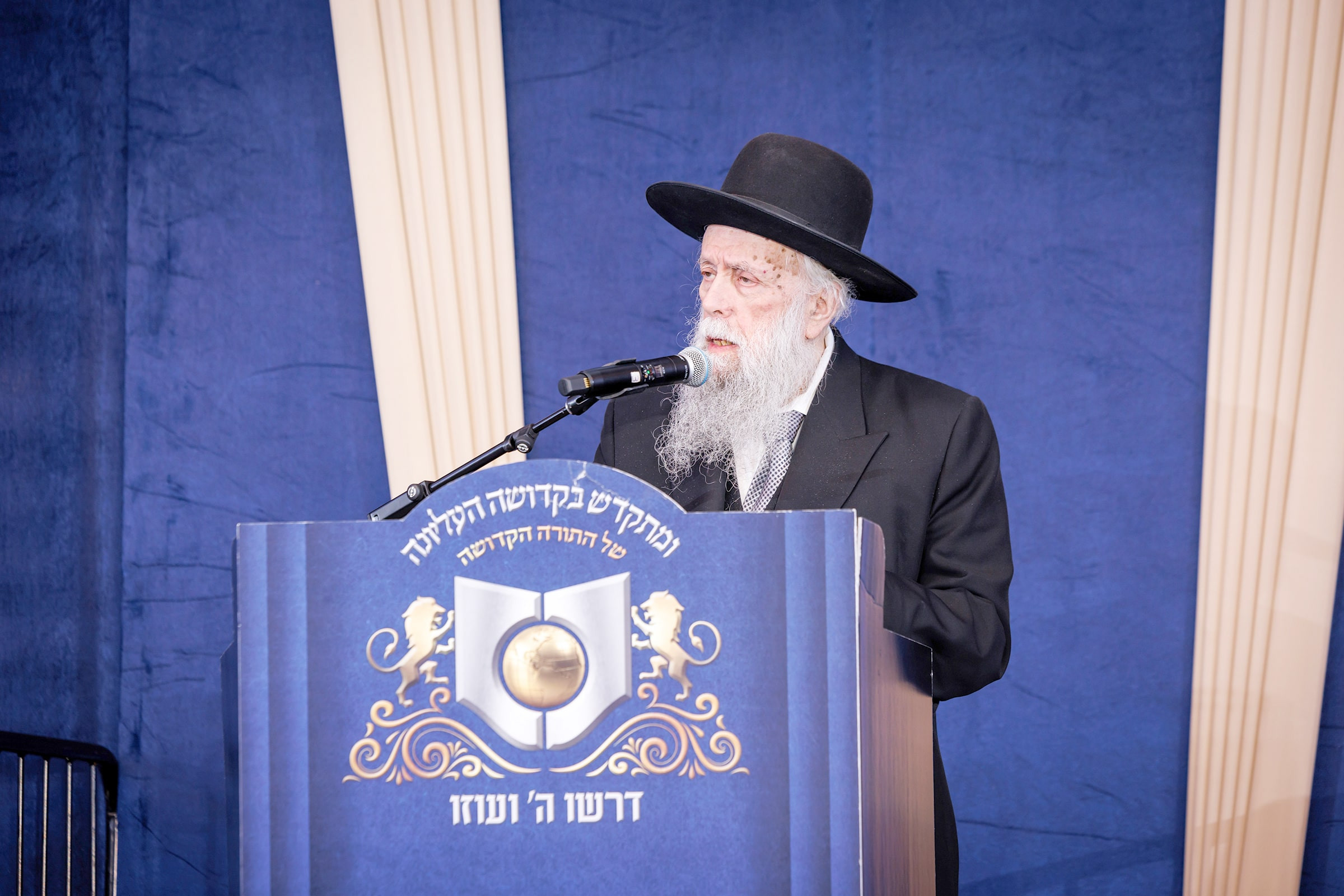 When Rav Moshe Shaul got up to speak in front of the packed convention center hall, he reminisced about his rebbi, Rav Wosner, and Rav Wosner’s relationship with Rav Dovid Hofstedter. “I remember that whenever Rav Wosner would meet with Rav Dovid, he would greet him with great warmth and love. He would cite the passuk, ‘Vayehi Dovid, l’chol drachav maskil v’Hashem imo – Dovid was successful in all his ways and Hashem was with him.’ Rav Wosner would explain that Rav Dovid is a maskil, a clever man who knows where to invest. He knows how to increase Torah in Klal Yisrael. He built mosdos for Hashem.’ That is how he has merited to now make the siyum on the third machzor of Kinyan Halacha.”