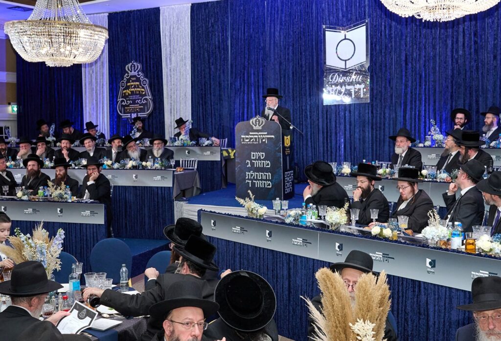 The siyumim held on Motzoei Shabbos parshas Vayigash at the Binyanei Haumah Convention Center in Yerushalayim, the following night in London, at the Hall of the Aviation Suite, Thistle Heathrow and two nights later, on Motzoei Asarah B’Teves at the Eminence Hall in Boro Park, featured addresses by senior Gedolei Yisrael.
