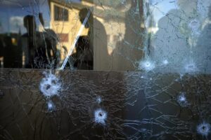 Videos on social media showed massive plumes of dark smoke billowing from Israel’s northern hills and streaks through the sky left by the Iron Dome system. Widely circulated photos showed shrapnel that punched a hole in a street in the northern Israeli town of Shlomi and at least one building with its windows blown out.