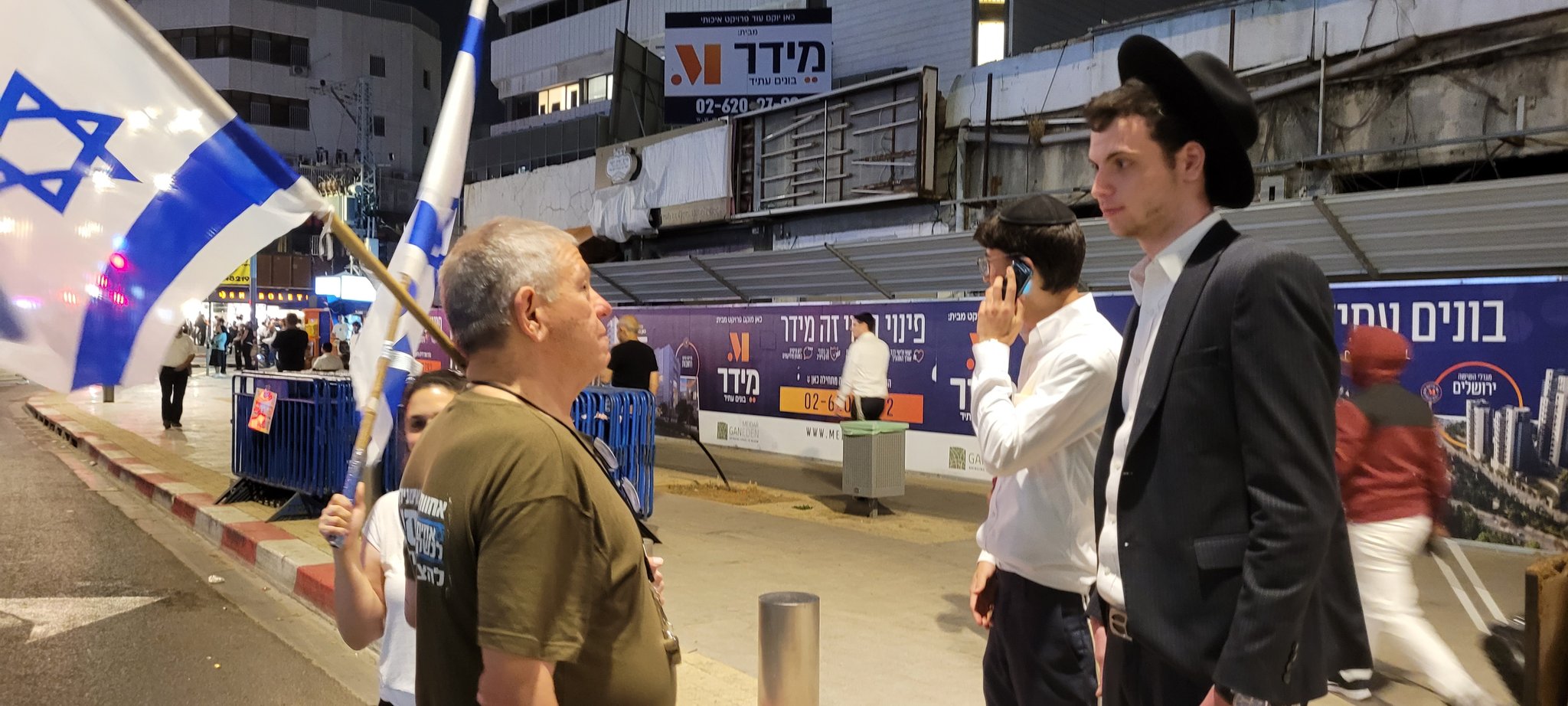 Some friendly conversations occurred between Chareidim and protesters: