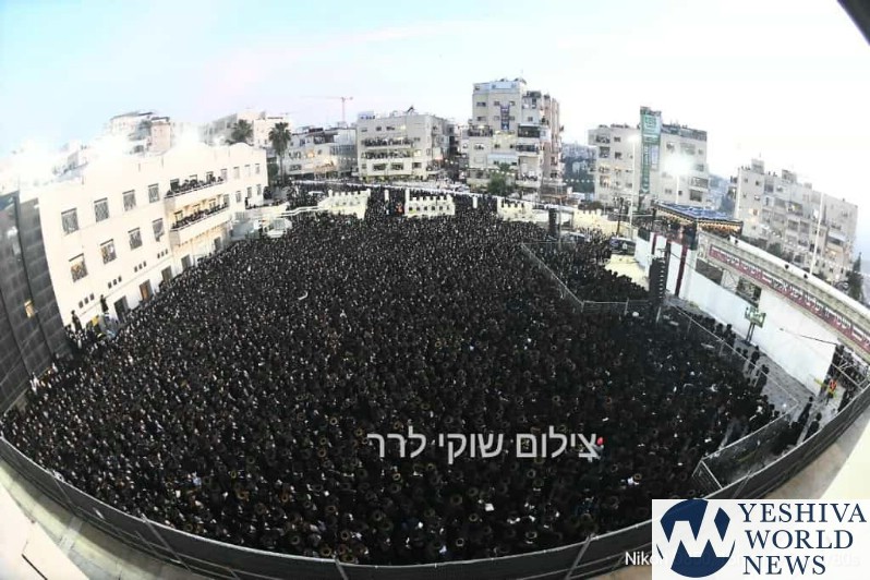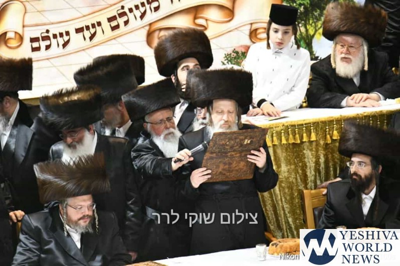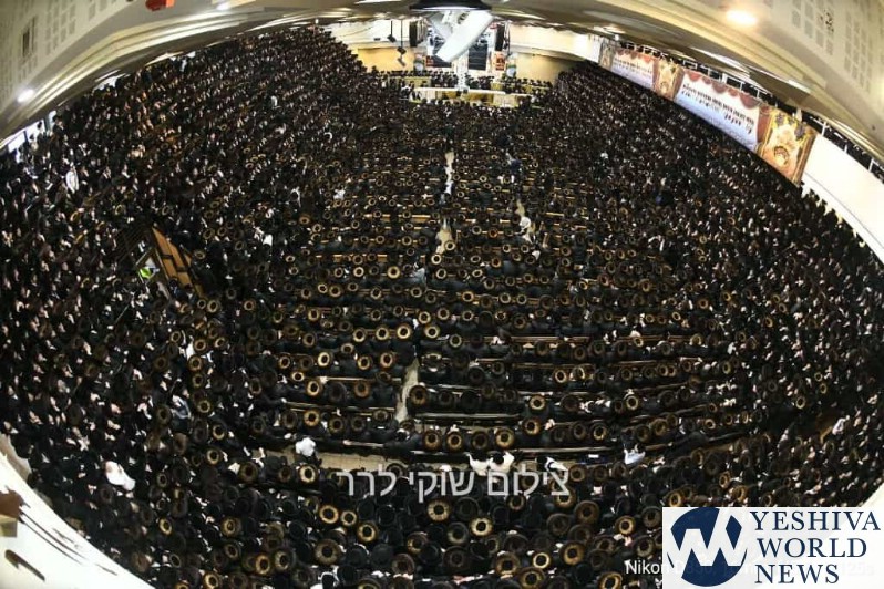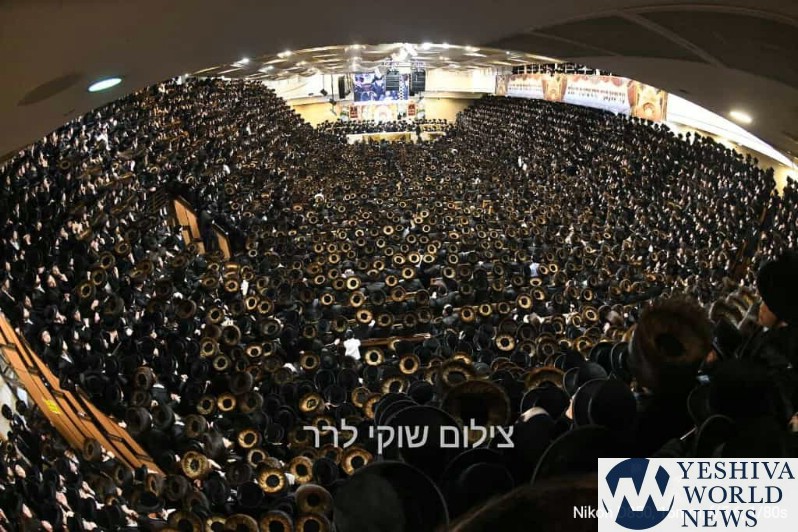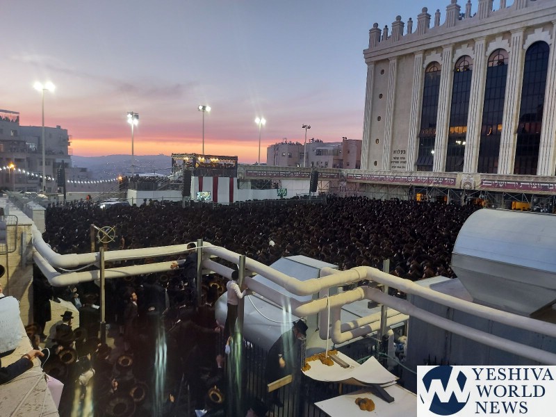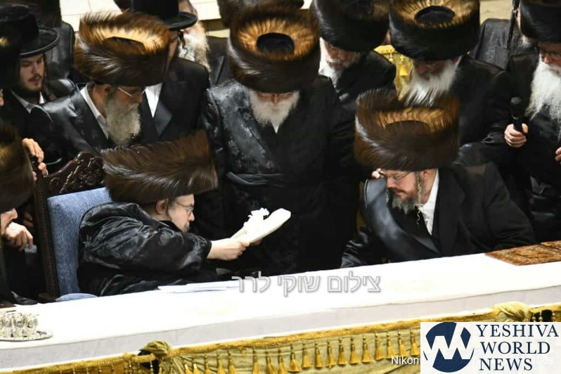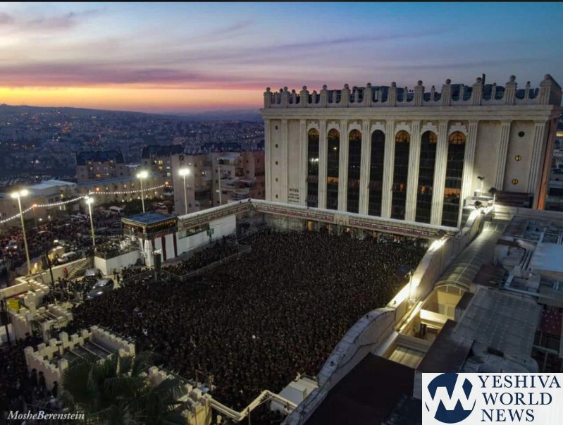 The chuppah was held at 7:30 p.m. outside the large Beis Medrash in Kiryat Belz. Afterward, the family members and guests were transported to the Arena stadium in the Malcha neighborhood of southern Jerusalem, where the seudah and dancing are being held.