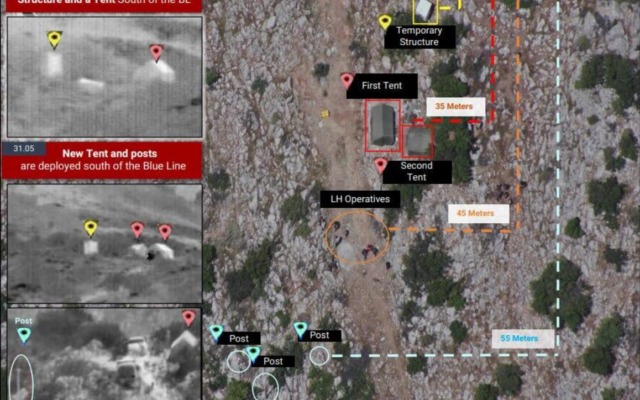 Kan News reported on Friday that the post, consisting of two tents in the Har Dov area, was set up 30 meters inside Israeli territory and are manned by armed Hezbollah terrorists, including members of the Radwan Force, Hezbollah’s elite unit. The tents were equipped with electricity provided by generators placed nearby.