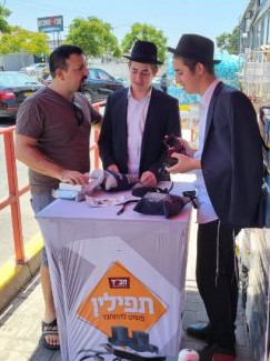 The man, a resident of Nes Tziona, rolled up his sleeve after he apologized and requested to put on tefillin.