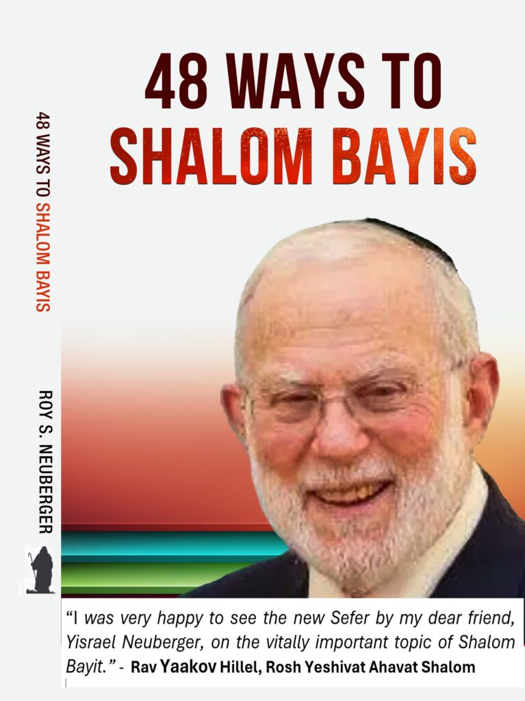 Roy Neuberger has penned an important and eminently readable book on the topic of Shalom Bayis. He has provided newlywed couples as well as longer-wed couples with 48 tools to improve their marriages and/or fix problems. His down to earth style and refreshing honesty combined with Torah insights make for some very powerful strategies.