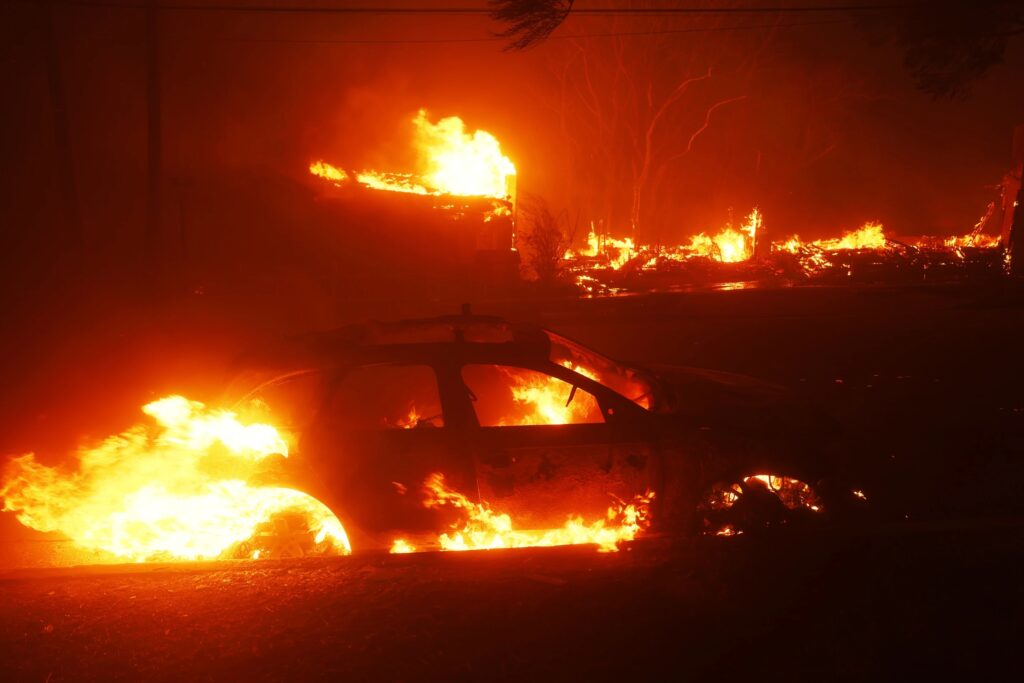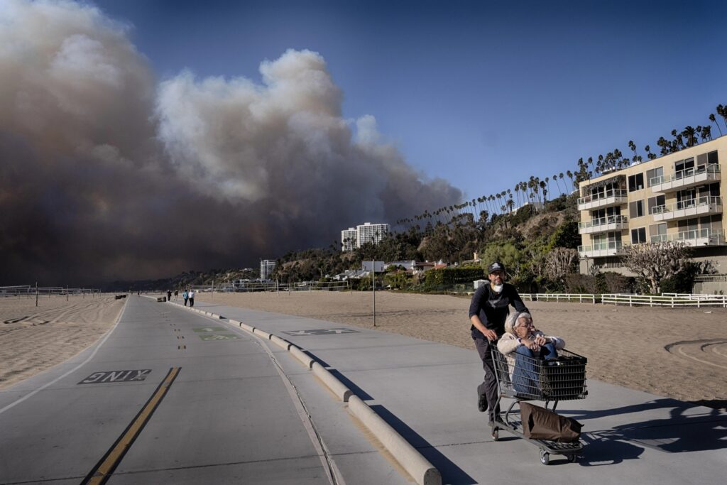 CNN reported in the early hours of Wednesday morning that winds of almost 100 mph continue to blow across Southern California and the fires are expected to intensify. Three life-threatening fires are consuming homes. The largest fire – in the Pacific Palisades – has forced tens of thousands of people to flee, causing roads to be blocked and forcing people to abandon their cars. In one area, workers are frantically evacuating elderly residents while a blaze rages just a block away.