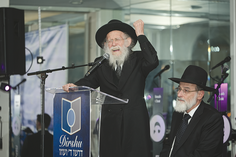 Emotion gripped the assemblage. Wide-eyed with awe, everyone watched the Gaon and Tzaddik,HaGaon HaRav Shimon Galei, shlita, walk into the hall of the White Shul in Far Rockaway, arm-in-arm with the Nasi of Dirshu Rav Dovid Hofstedter, shlita. It was just a harbinger of what was to come in a night full of spiritual and emotional highlights that brought together some five hundred members of the Far Rockaway-Five Towns communities.