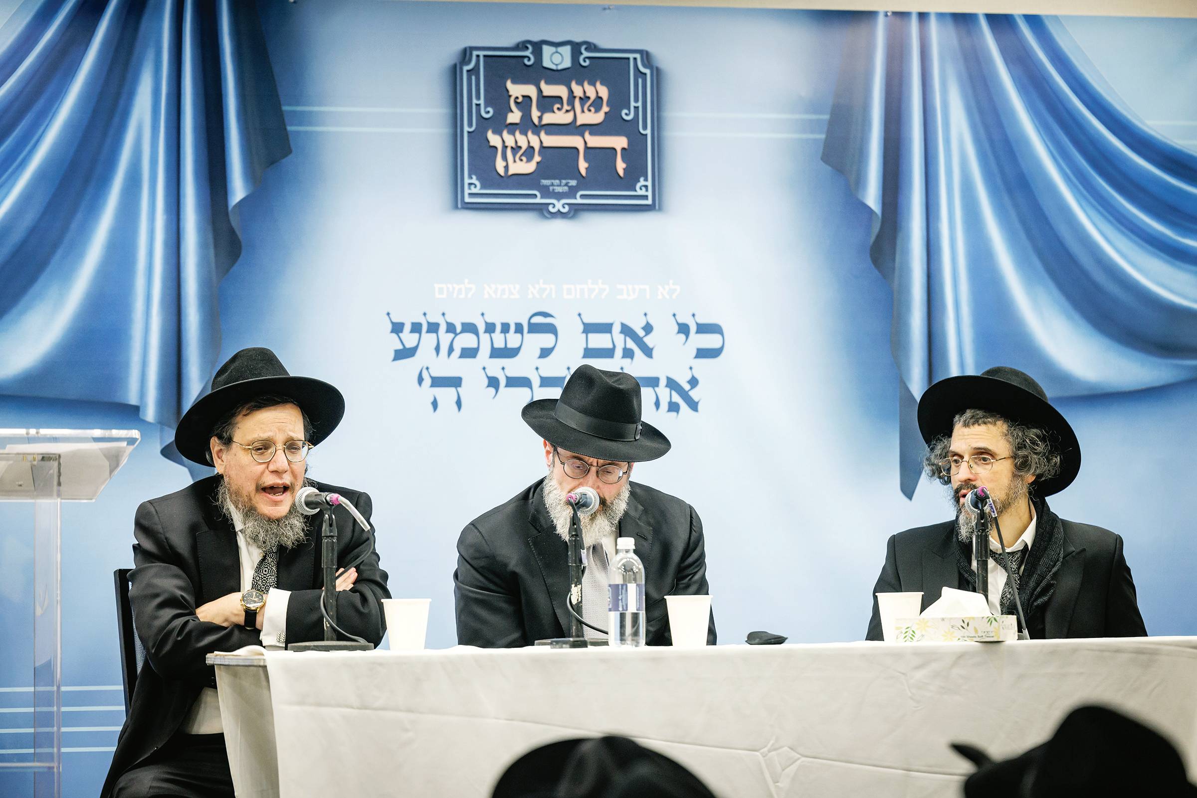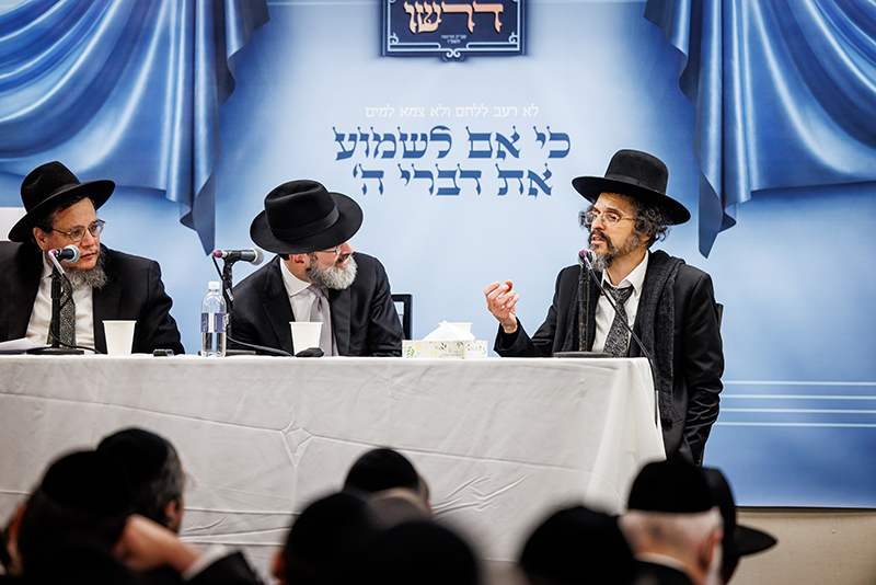 One of the most gratifying aspects of a Dirshu Convention is the opportunity it offers to avail oneself of the tremendous gift that Hashem has given us, being able to hear guidance from Gedolei Yisrael. For the first time, Dirshu featured a panel of three Rabbanim, answering questions sent in by lomdei Dirshu. It was a sight to watch the packed assemblage thirstily absorbing words of advice and chizuk given by the Rabbanim.