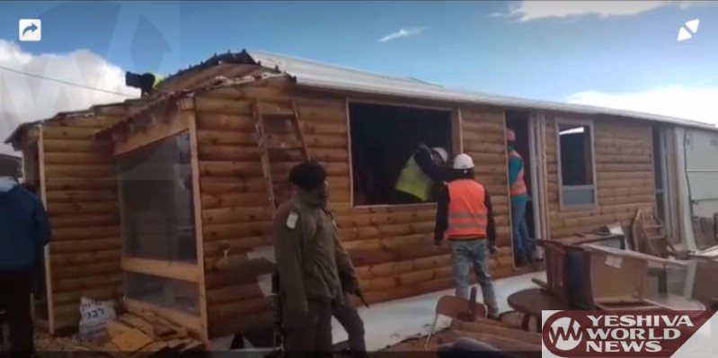 On the other hand, on Monday morning, 7 Teves, a cold rainy morning, agents of the Civil Administration arrived at Yishuv HaDaas and informed a family with children they must evacuate immediately, without any prior warning. The agents then destroyed the family log cabin home.