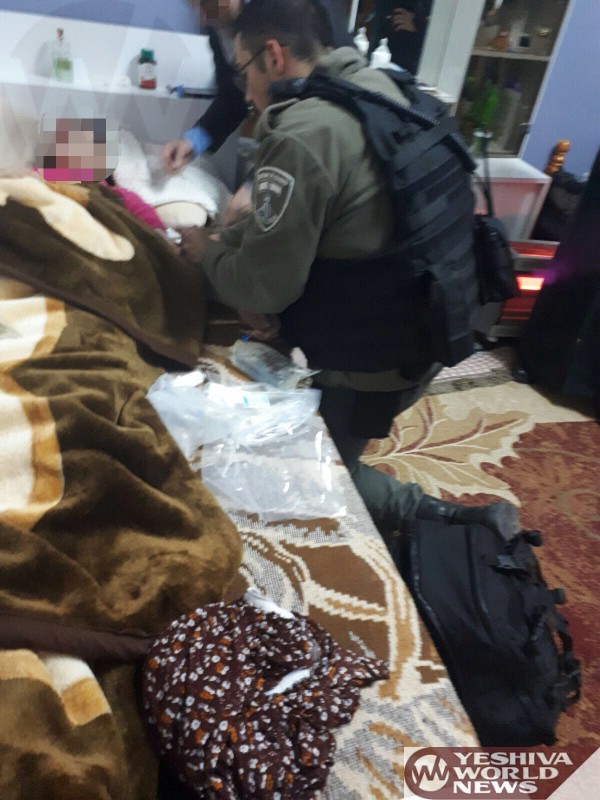A resident of the PA area of Hebron arrived at a checkpoint on Sunday night, telling border police that the pregnant woman lost consciousness in her home. The medic on call was activated without hesitation and they responded to the home and the woman treated. After she was given an IV and her condition stabilized, she was handed over to a Red Crescent EMS team for transport to a hospital.