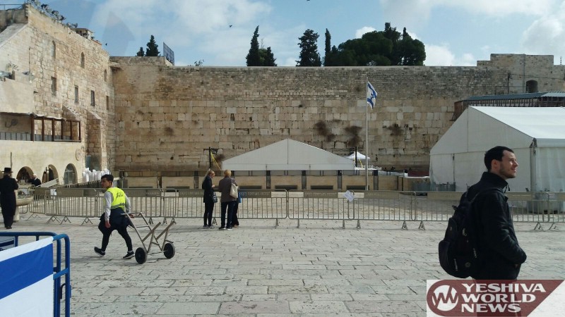The following shows the Kosel on Tuesday morning, 7 Shevat, ahead of the day’s planned visit to the holy site by visiting United States Vice President Mike Pence.