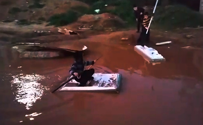 The recent rains caused a flood near the Viznitz Cemetery in Bnei Brak. Once discovered by children in the community, those same children began to play in it with makeshift rafts.