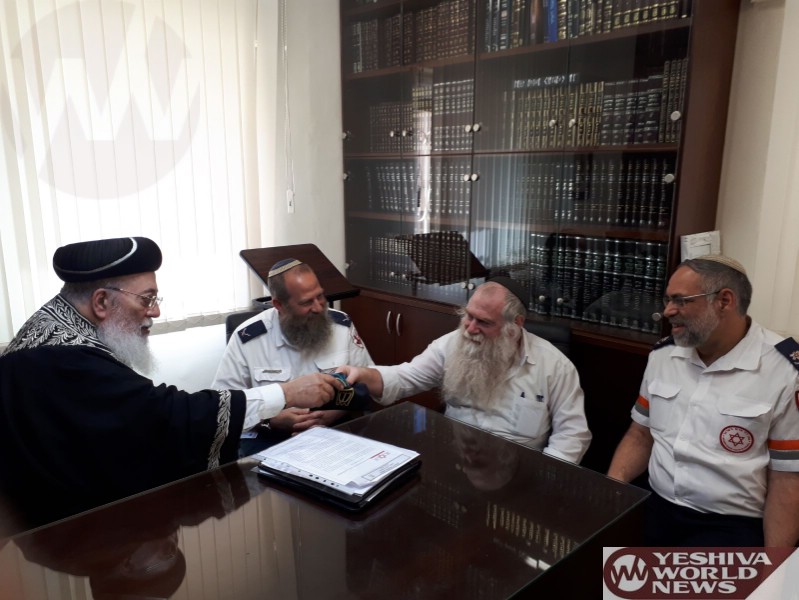 In the following pictorial essay, we wee Magen David Adom Jerusalem Chief Shlomo Petrover and Deputy Commander Avi Hovav selling MDA Jerusalem’s chametz to Jerusalem Sephardi Chief Rabbi Shlomo Moshe Amar Shlita.