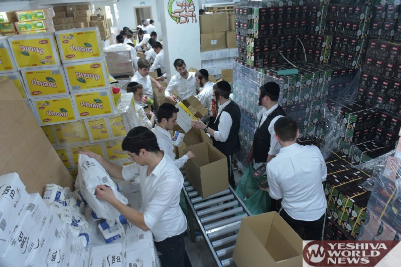 While the rest of the world was busy vacuuming corners in search of chometz, Rabbi Shisha and his team of volunteers were busy searching for sources for 1,387,765 pounds of food. Once all the orders were placed, both Tov V’Chesed warehouses were engulfed in a whirlwind of deliveries from suppliers and frenzied packing.