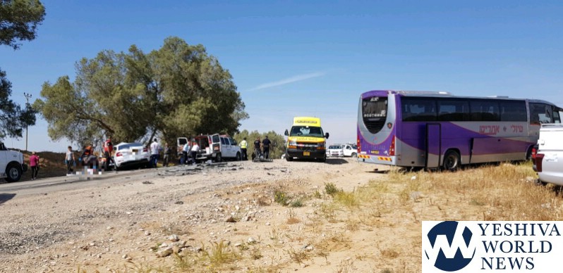 The bus driver was transported by helicopter from the scene by MDA, suffering from abdominal injuries as well as injuries to his extremities. Tens of passengers on the bus were checked by EMS personnel, and B’chasdei Hashem, they did not require transport to a hospital.