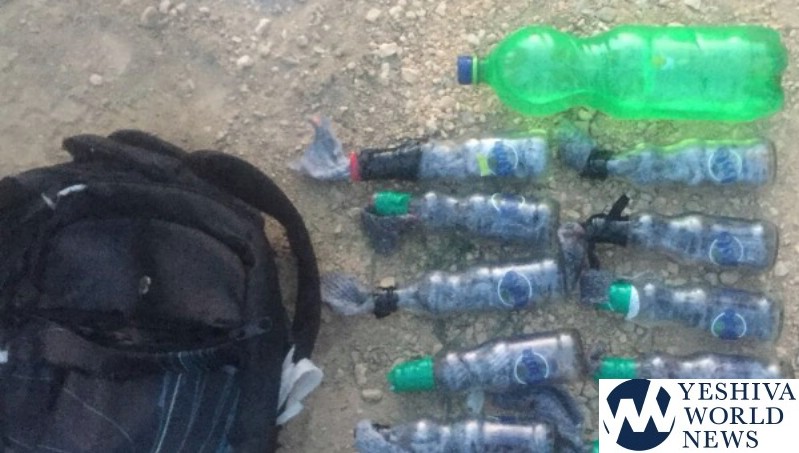 An IDF patrol along the Gaza border fence on Monday, 17 Nissan, discovered a back pack that contained firebombs ready for use. The bag was left near an area near an IDF outpost.